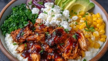 Bol De Poulet Barbecue Riche En Protéines Avec Fromage Cottage