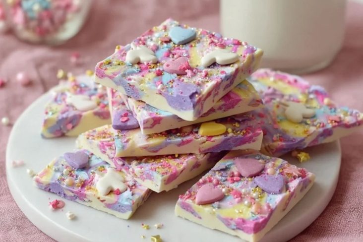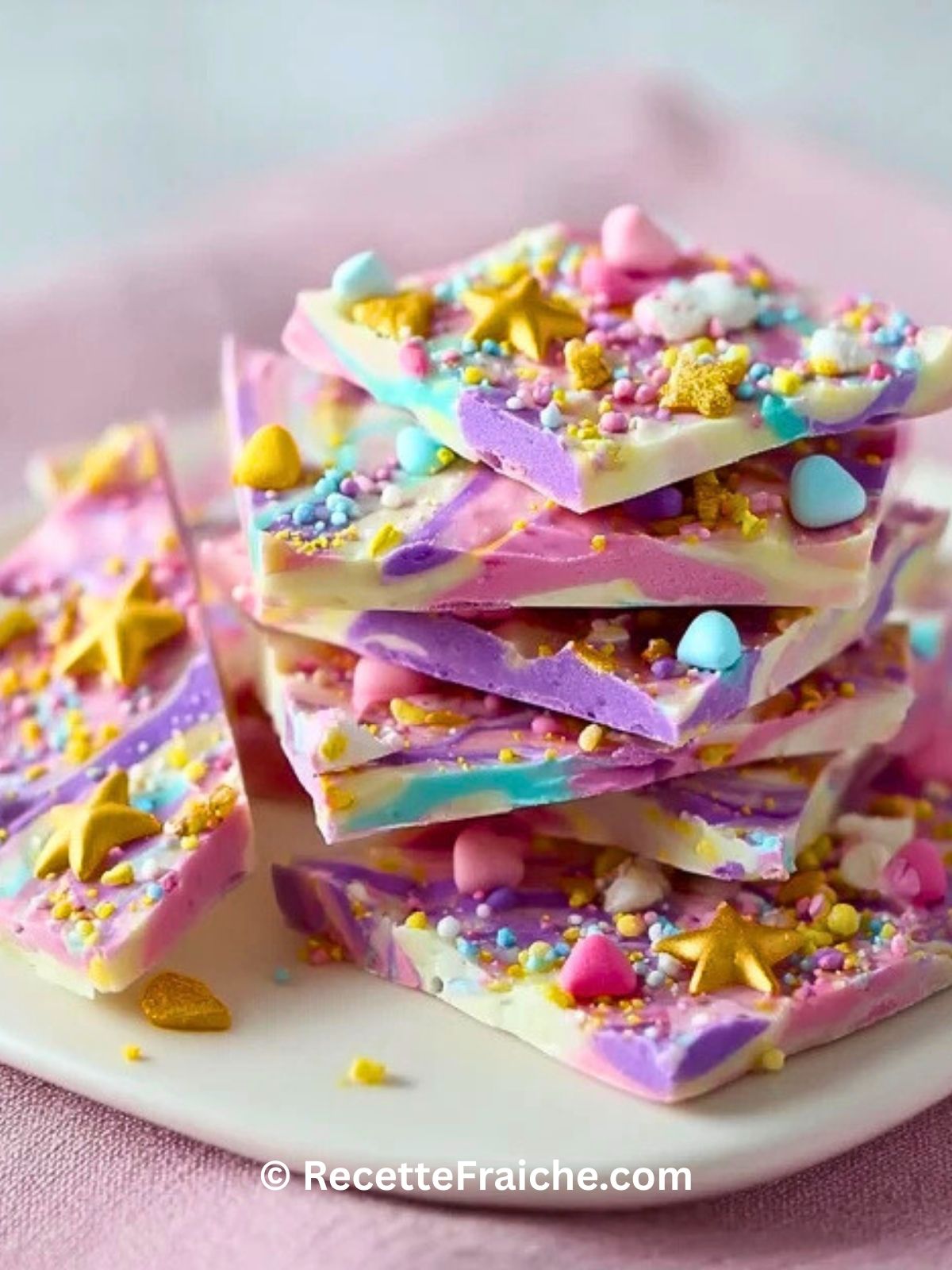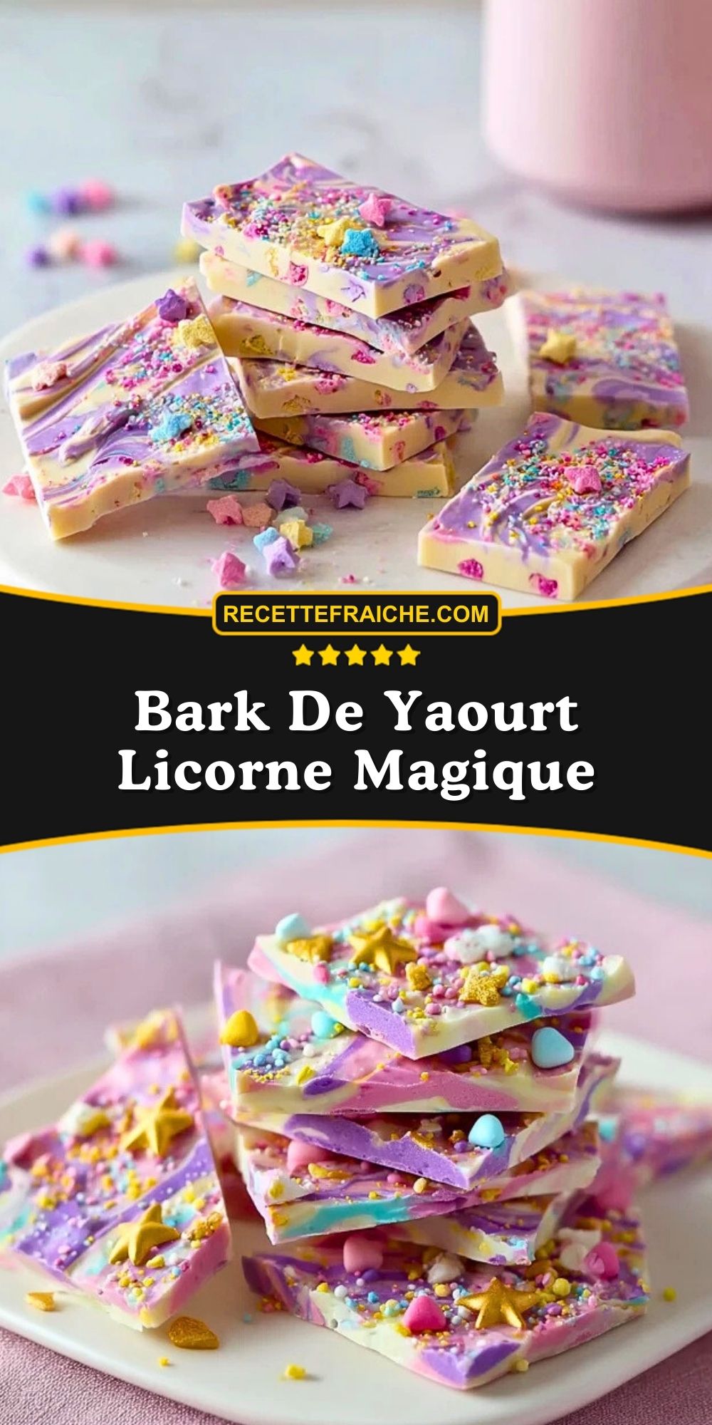 Un Bark de Yaourt Licorne Magique ultra coloré, frais et croquant, parfait pour les enfants et les fêtes. Cette recette healthy est facile, rapide et personnalisable, avec un joli effet marbré pastel et des décors féériques. Idéale en dessert ou au goûter, sans cuisson.