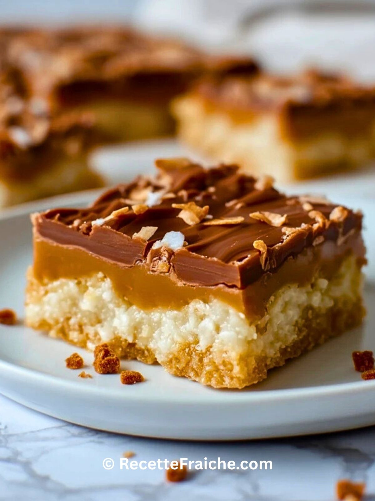 Ces barres au caramel et à la noix de coco offrent un équilibre parfait entre fondant, croquant et douceur exotique. Faciles à réaliser, elles se composent d’une base biscuitée, d’une couche de noix de coco moelleuse, d’un caramel onctueux et d’un nappage chocolaté. Idéales pour un dessert ou un goûter gourmand, elles se préparent à l’avance et plaisent à tous.