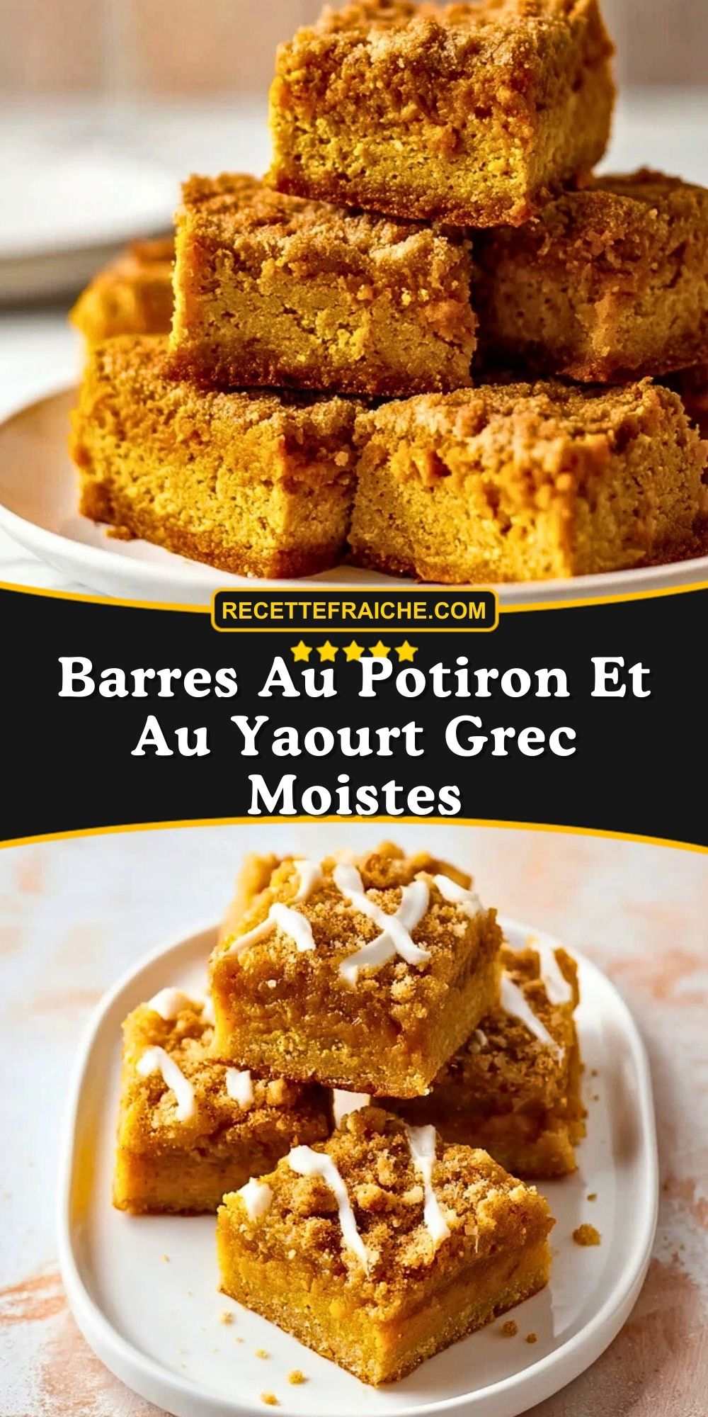 Vous cherchez une alternative saine aux gâteaux industriels ? Ces barres au potiron et au yaourt grec sont faites pour vous. Faciles à préparer, elles se conservent plusieurs jours et gardent tout leur moelleux. Elles sont parfaites au petit-déjeuner, en dessert ou pour un goûter automnal. Et ce petit goût d’épices… irrésistible ! On peut même personnaliser la recette avec des noix ou des pépites de chocolat.