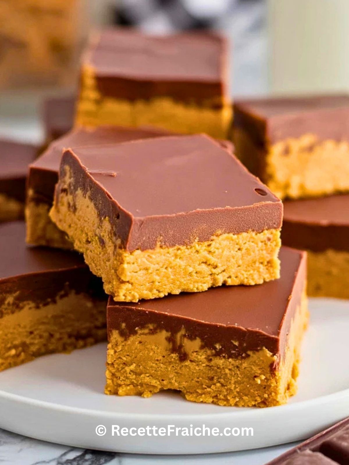 Elles sont aussi très pratiques pour recevoir ou pour anticiper un dessert à l’avance. Je les coupe en carrés, je les garde bien fraîches, et elles restent aussi belles que savoureuses. C’est une option idéale pour les amateurs de chocolat et de cacahuète qui veulent une recette simple mais irrésistible.