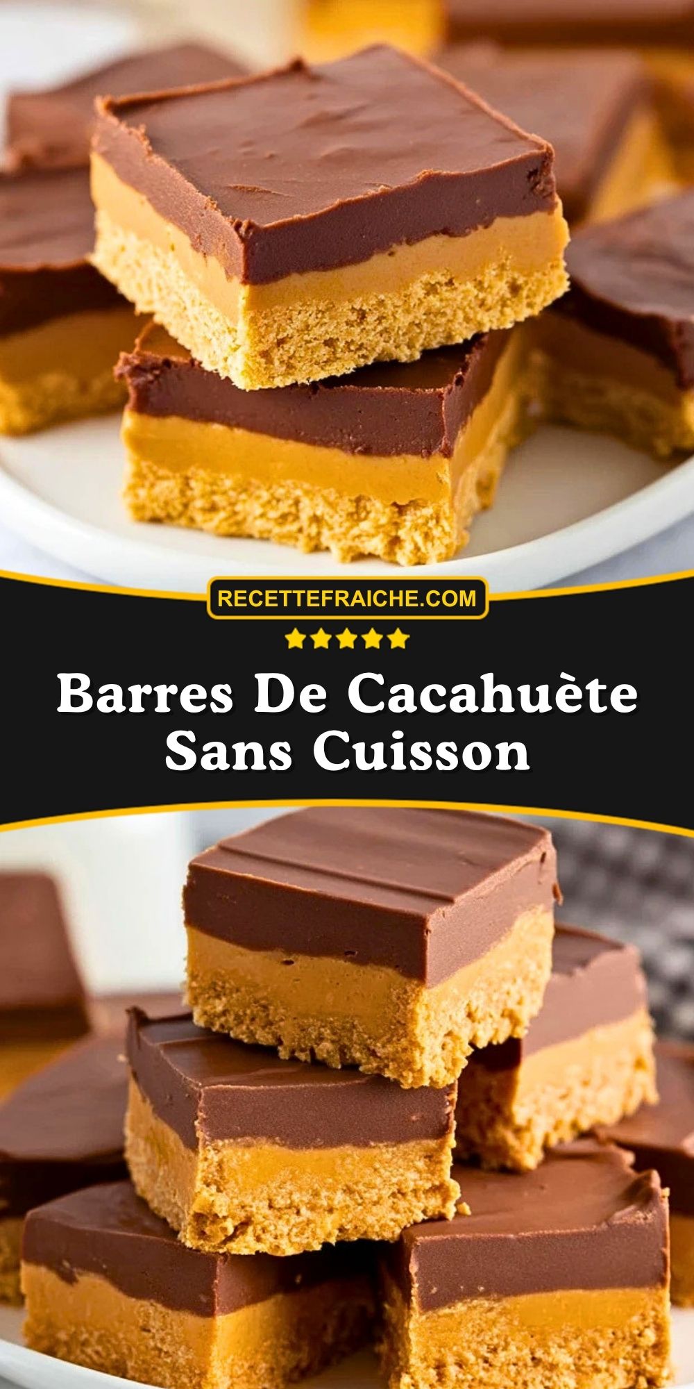Keywords: barres de cacahuète sans cuisson, dessert sans four, chocolat, beurre de cacahuète, barre gourmande, recette facile