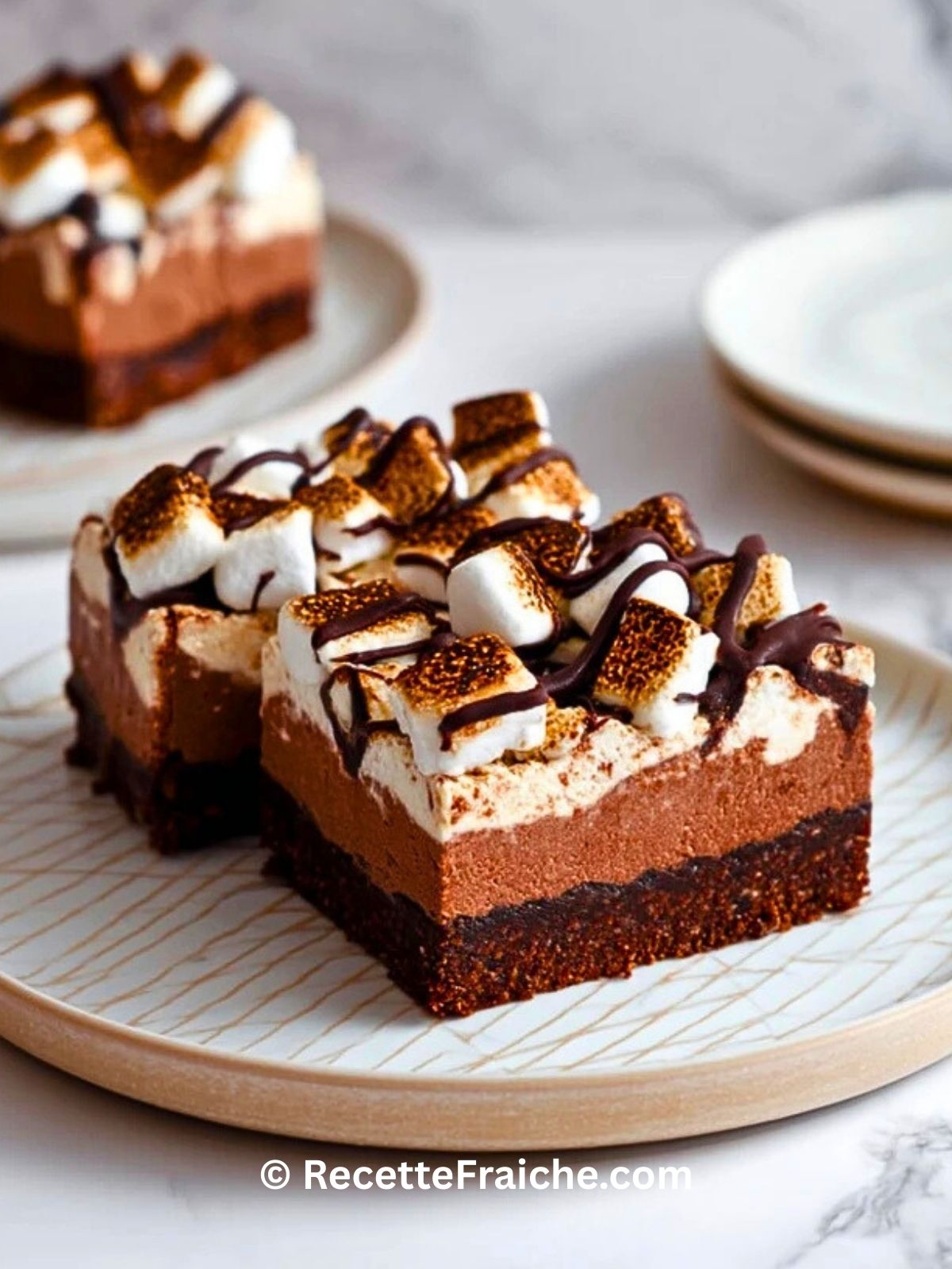 Barres de cheesecake au chocolat chaud, un dessert d’hiver crémeux et fondant avec base biscuitée, cœur chocolaté et ganache onctueuse. Parfait pour les fêtes et les goûters réconfortants.
