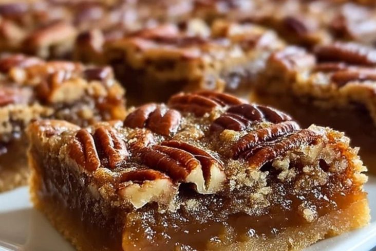 Des barres fondantes et croustillantes au goût de tarte aux pacanes, idéales pour un dessert facile à partager ou à préparer à l’avance.