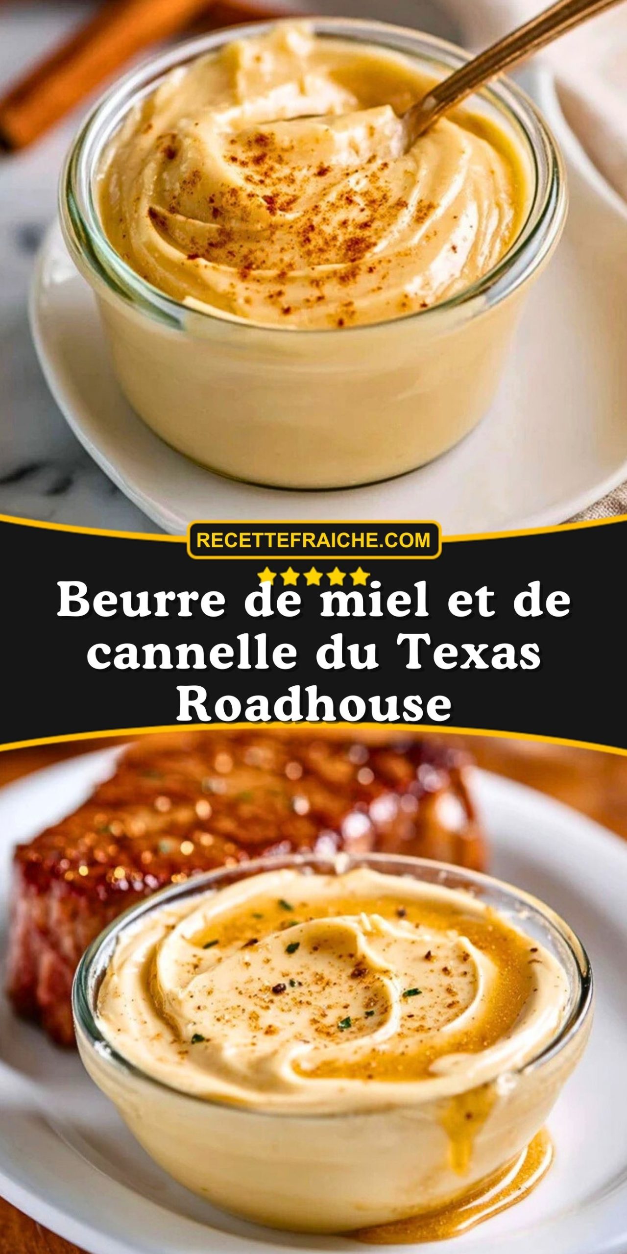 Beurre fouetté au miel et à la cannelle, inspiré du Texas Roadhouse : crémeux, parfumé, idéal à tartiner sur pain grillé, pancakes ou brioches pour un petit-déjeuner ultra gourmand.
