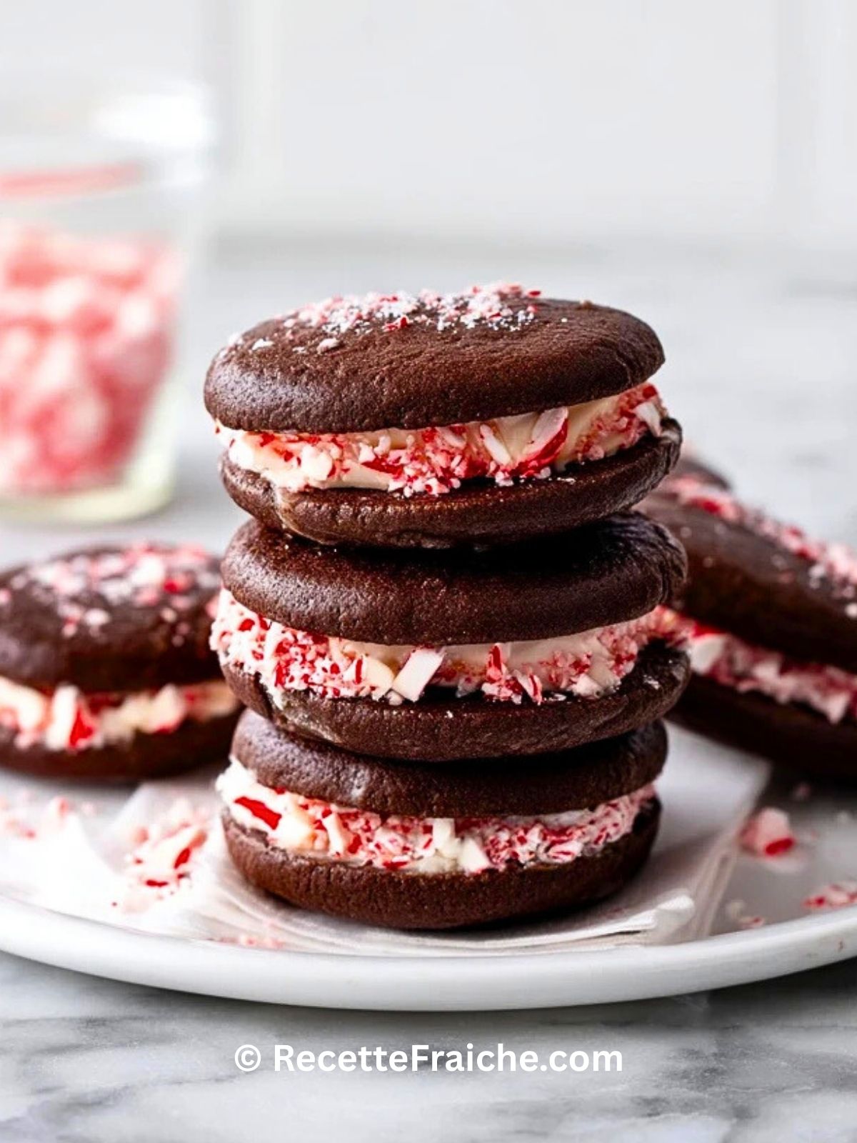 Des biscuits ultra moelleux au chocolat, garnis d’une crème onctueuse et d’une ganache, roulés dans des éclats de bonbons à la menthe poivrée. Ces biscuits sont parfaits pour les fêtes de fin d’année, gourmands et festifs, faciles à préparer, et toujours appréciés en cadeau ou avec un verre de lait.