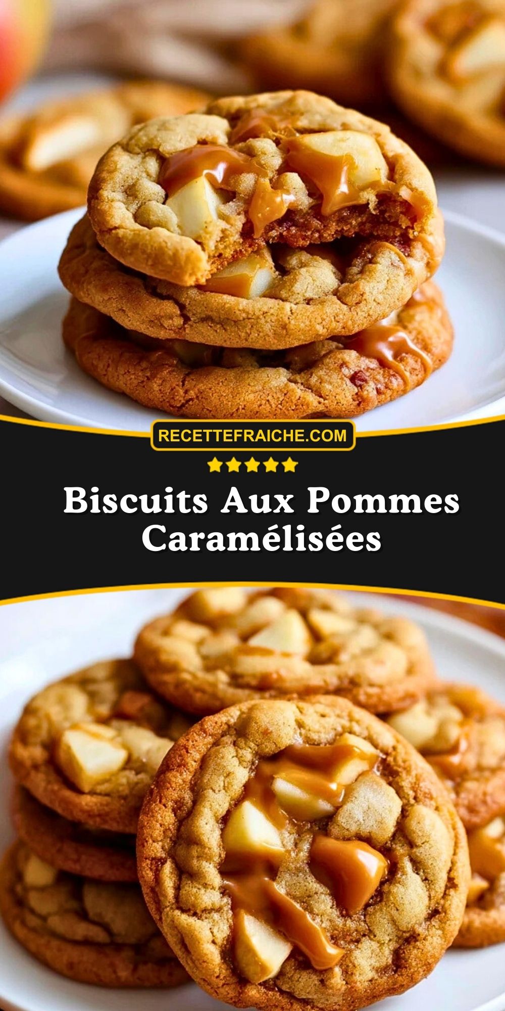 Keywords: biscuits aux pommes caramélisées, cookies pomme caramel, biscuits d’automne, cookies moelleux