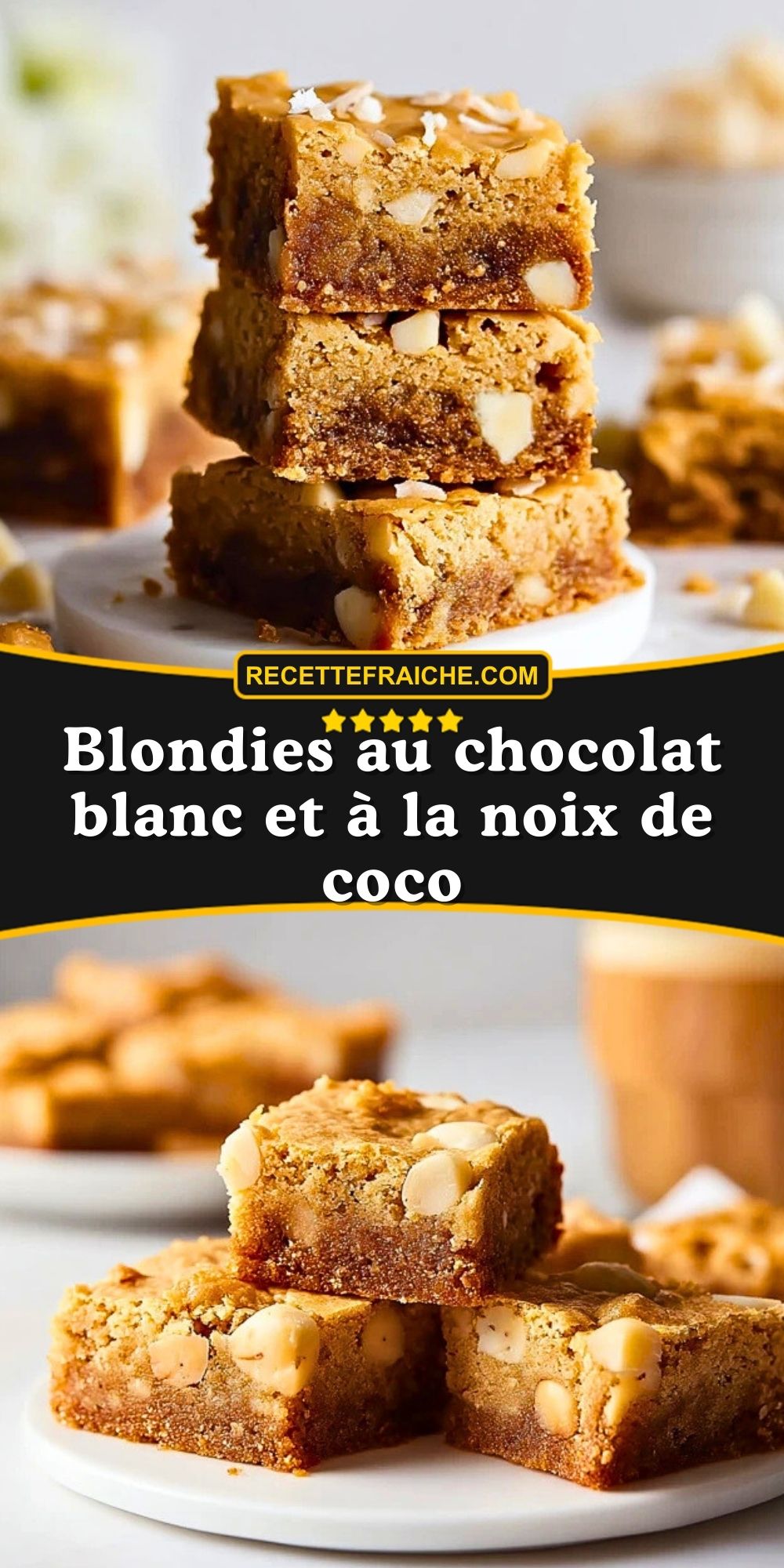 N’oubliez pas d’enregistrer cette recette sur Pinterest et de la partager avec vos proches. Ces blondies au chocolat blanc et noix de coco sont toujours un succès et j’attends vos retours gourmands !
