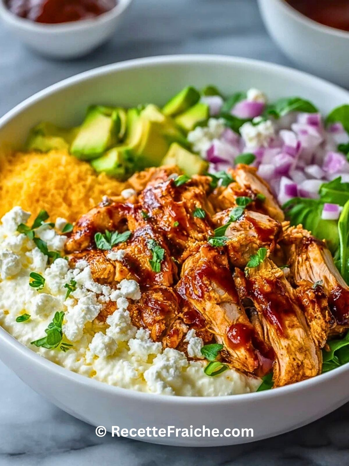 Ce bol de poulet barbecue au fromage cottage est une solution parfaite pour les repas rapides, équilibrés et savoureux. Il se décline facilement selon vos envies tout en vous apportant une belle dose de protéines.