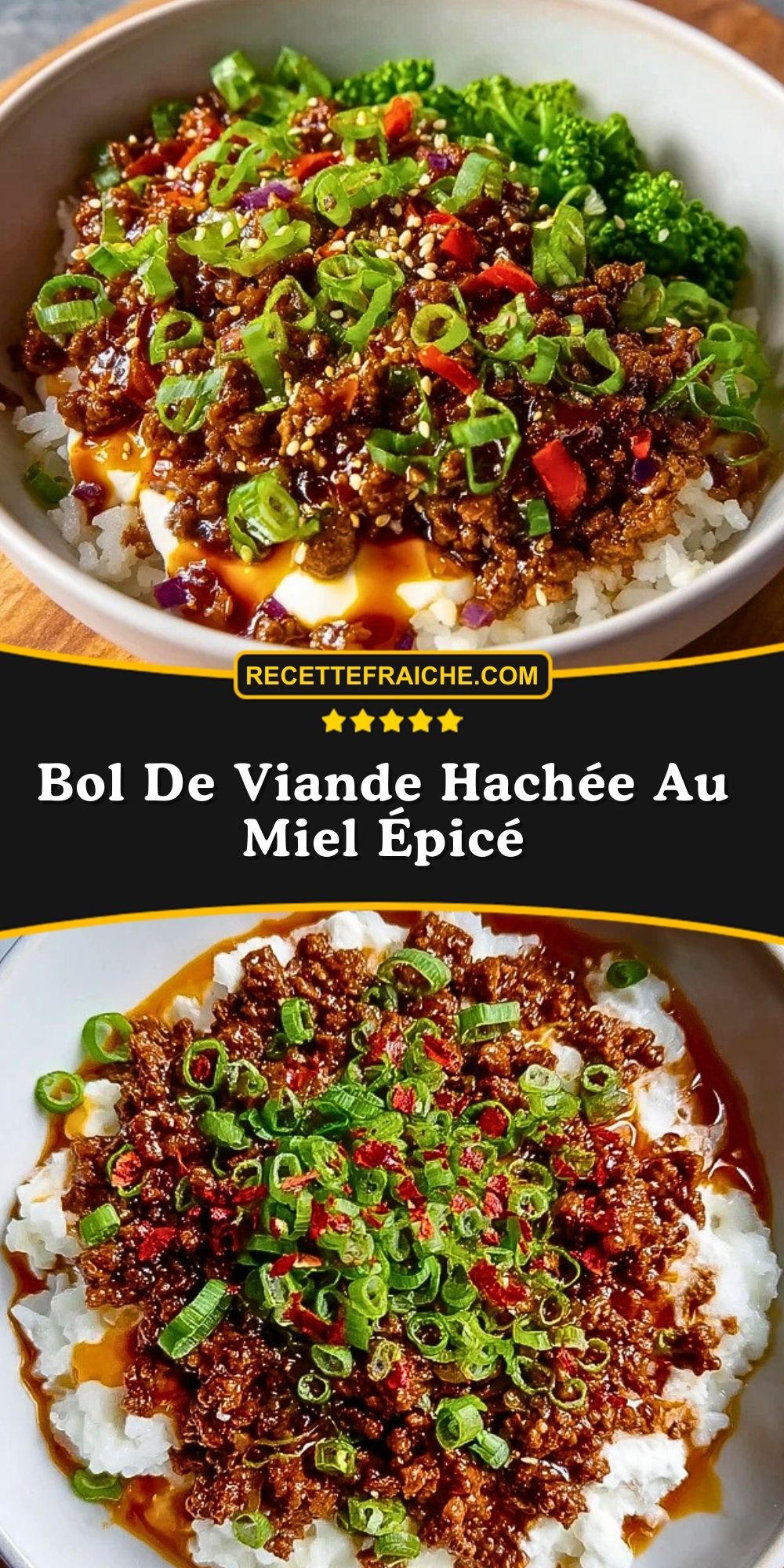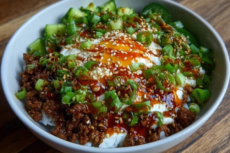 Un bol savoureux de viande hachée caramélisée au miel et relevée d’épices, servi sur du riz avec des légumes croquants. Un repas complet, rapide et personnalisable, idéal en semaine.
