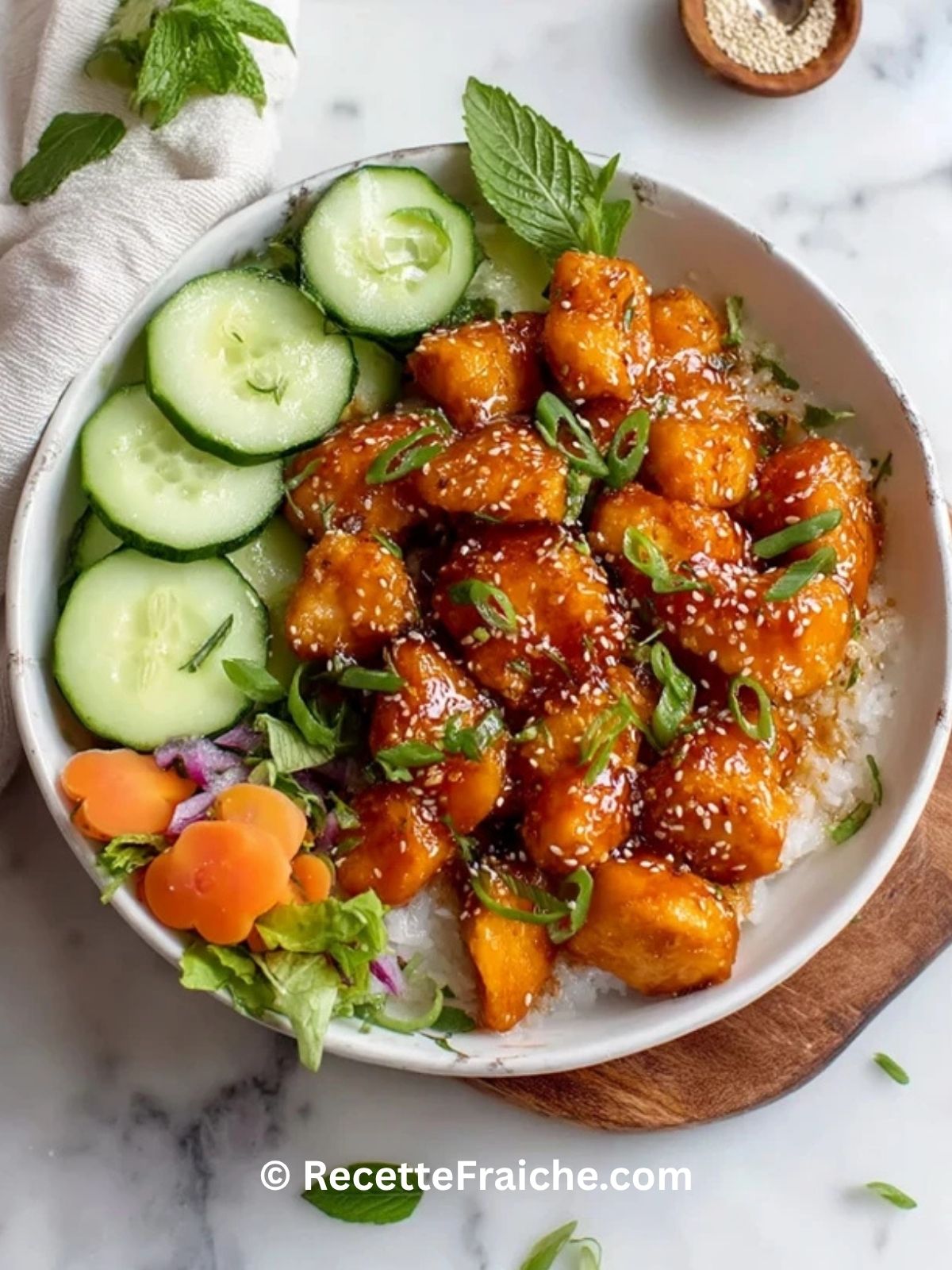 Ces bols réunissent tout ce que l’on aime dans un repas pratique et réconfortant : une protéine fondante, une sauce sucrée-salée pleine de caractère, une base rassasiante et une garniture fraîche qui apporte du croquant. La préparation reste accessible même pour un cuisinier débutant, et le résultat plaît autant aux adultes qu’aux enfants.