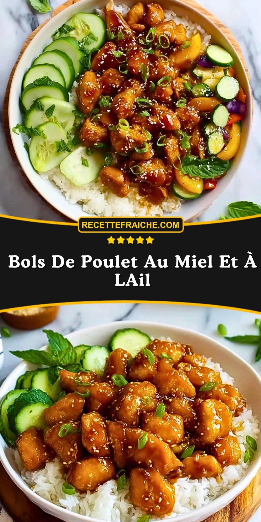 Keywords: bol de poulet au miel et à l’ail, poulet miel ail, rice bowl poulet, recette facile dîner, meal prep poulet