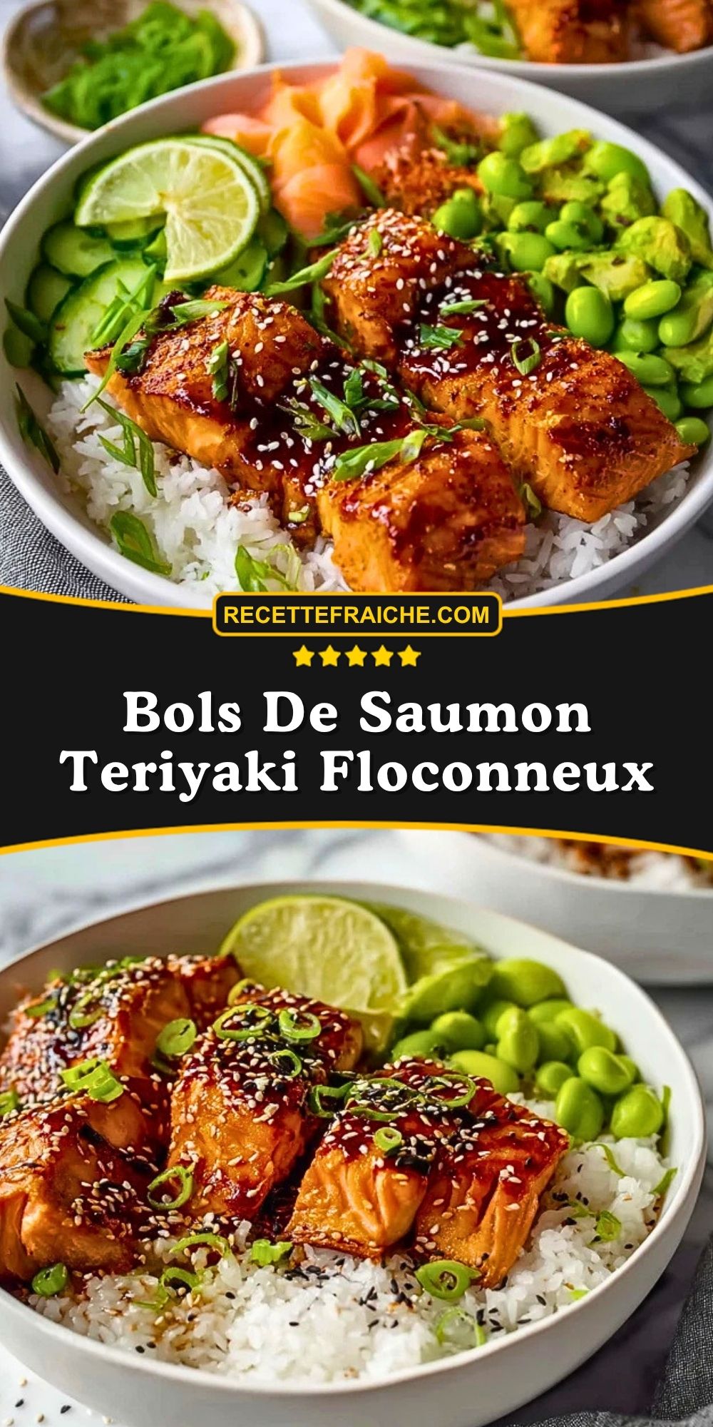 Je reviens souvent à ces Bols De Saumon Teriyaki Floconneux parce qu’ils sont simples, élégants et toujours satisfaisants. J’aime leur côté généreux, coloré et moderne, tout en restant accessibles à préparer à la maison. C’est une recette que je recommande autant pour les soirs de semaine que pour un repas plus soigné sans complication.