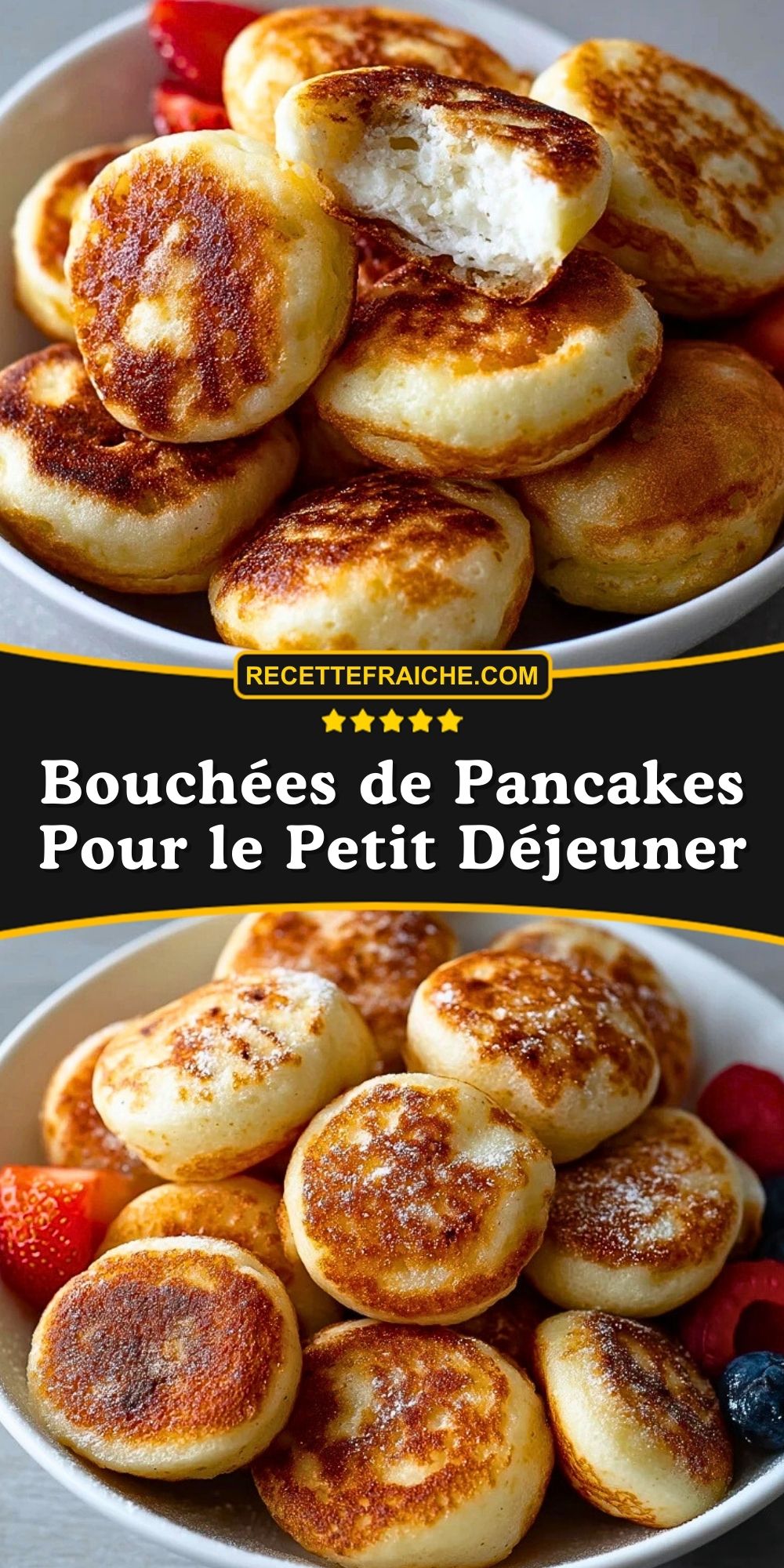 Keywords: bouchées de pancakes, mini pancakes, petit déjeuner facile, brunch gourmand, pancakes moelleux
