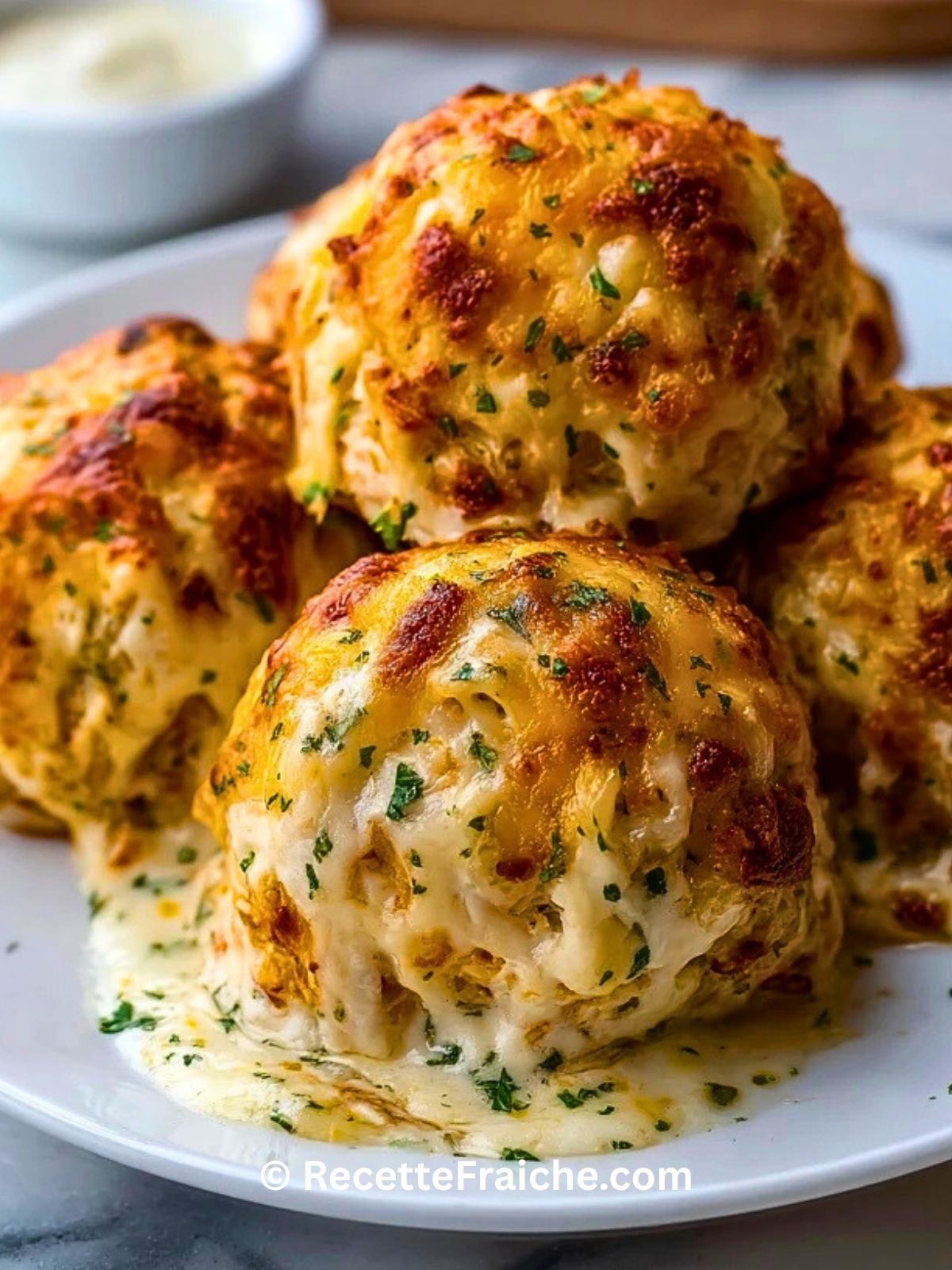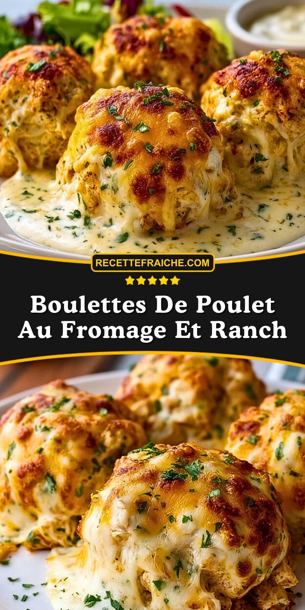 Keywords: boulettes de poulet au fromage et ranch, boulettes de poulet au four, recette poulet fromage, dîner facile au poulet, poulet ranch gratiné