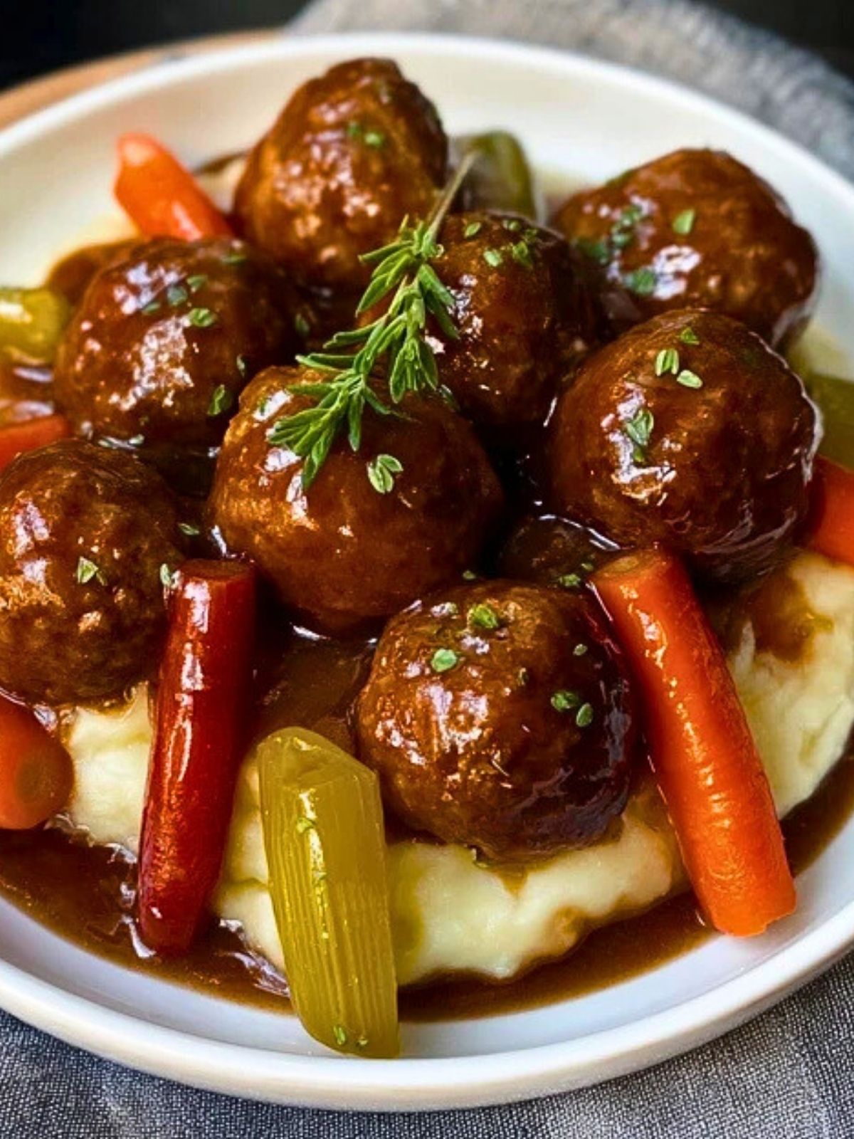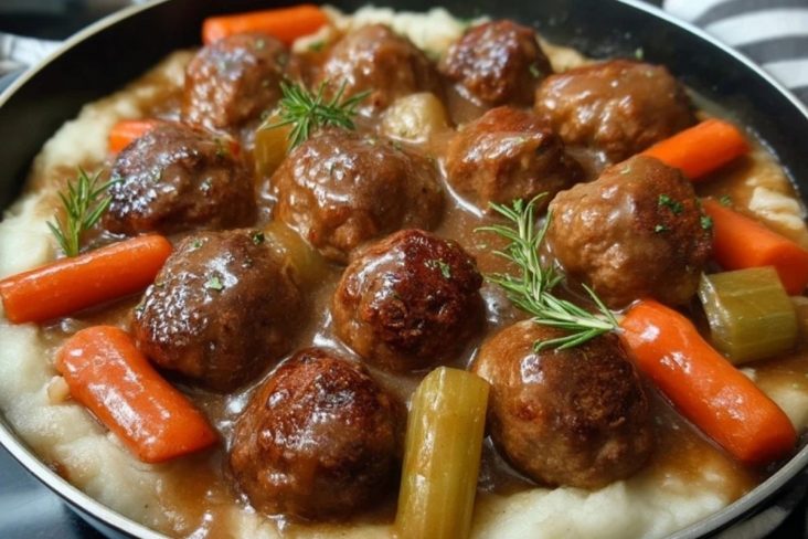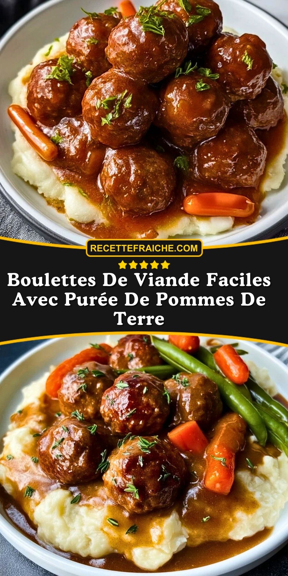 Un plat familial et réconfortant composé de boulettes de viande juteuses, d’une sauce onctueuse et d’une purée maison crémeuse. Parfait pour les repas en semaine ou du dimanche.