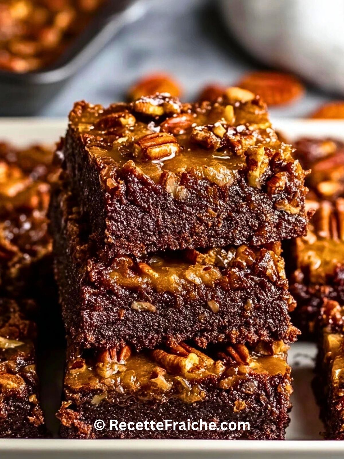 Keywords: brownies, chocolat, noix de pécan, caramélisé