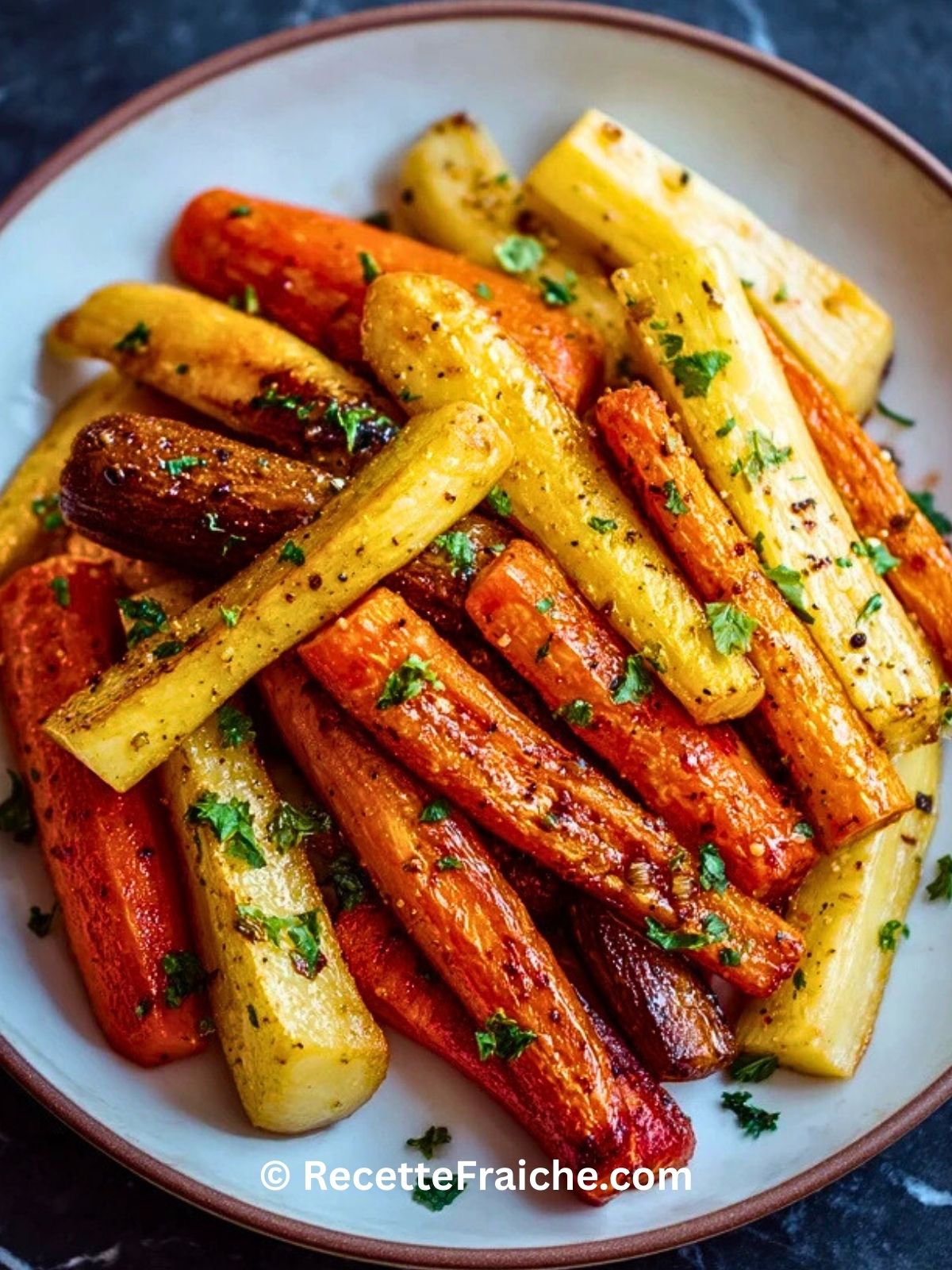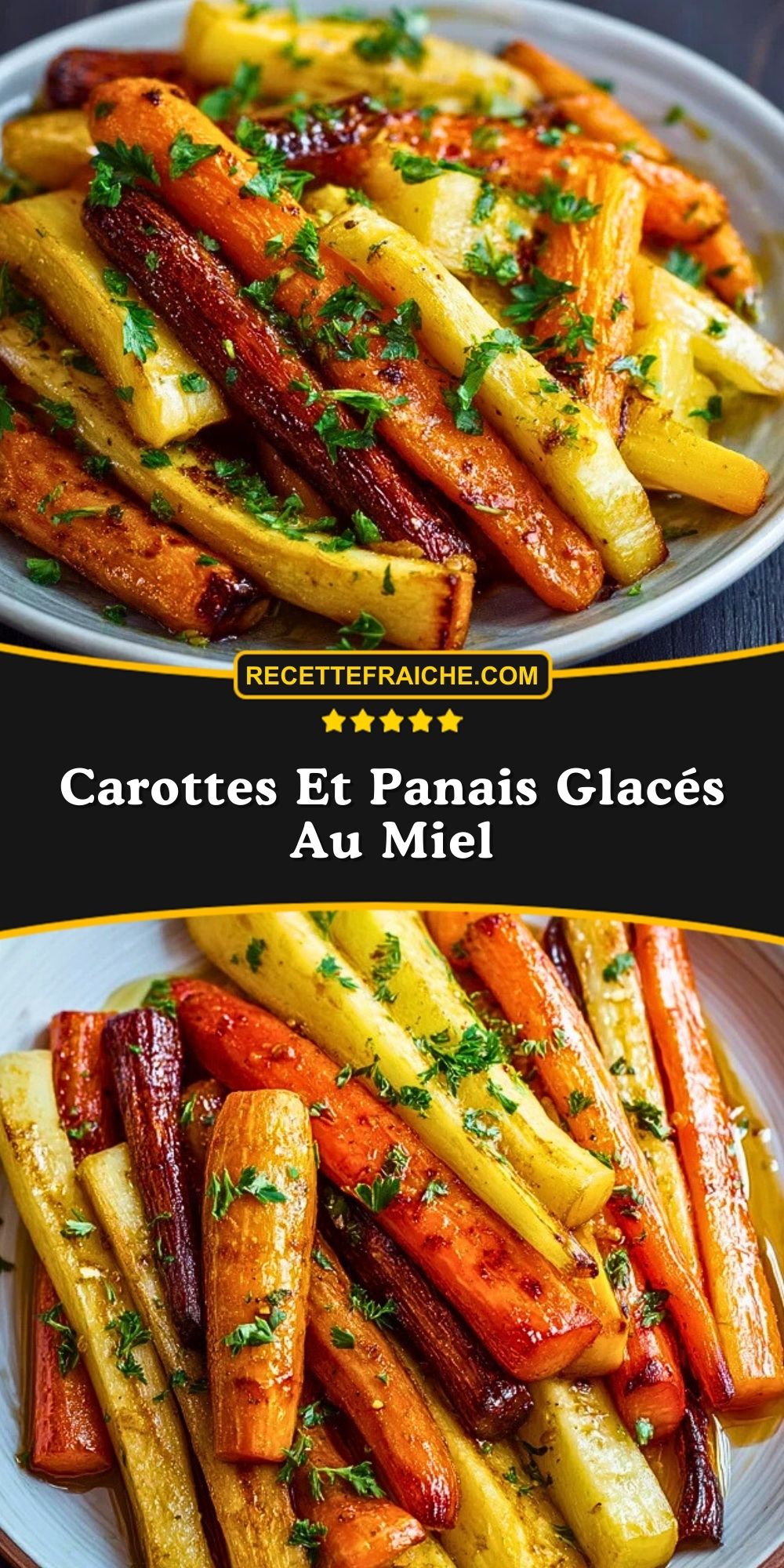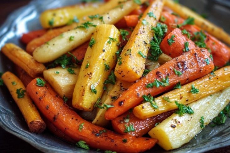 Des carottes et panais tendres et brillants, enrobés d’un glaçage au miel légèrement caramélisé. Un accompagnement réconfortant, simple et élégant, parfait pour sublimer vos plats d’hiver ou vos repas festifs.