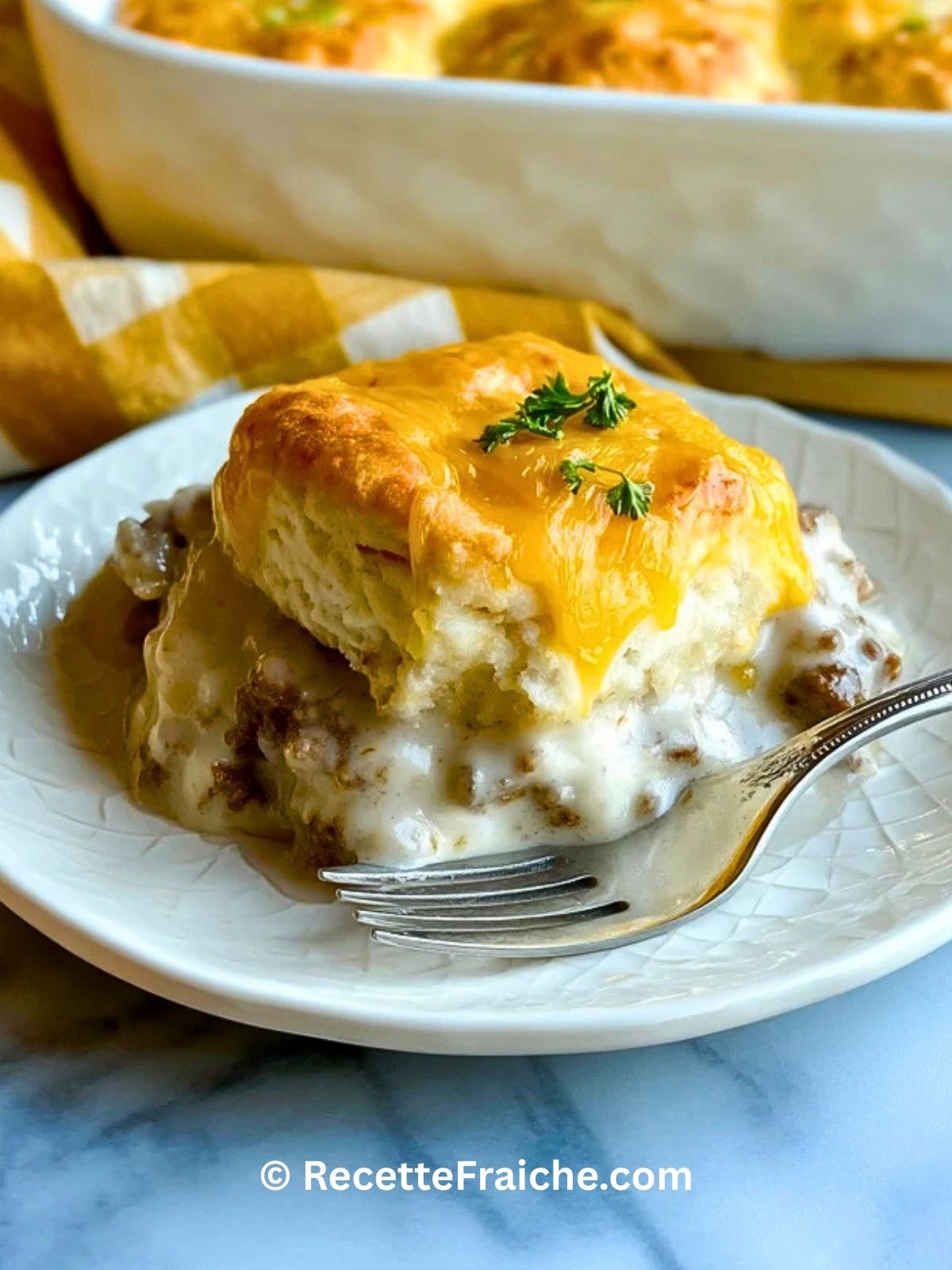 Keywords: casserole de biscuits et sauces, biscuits and gravy casserole, plat réconfortant, brunch salé, recette familiale
