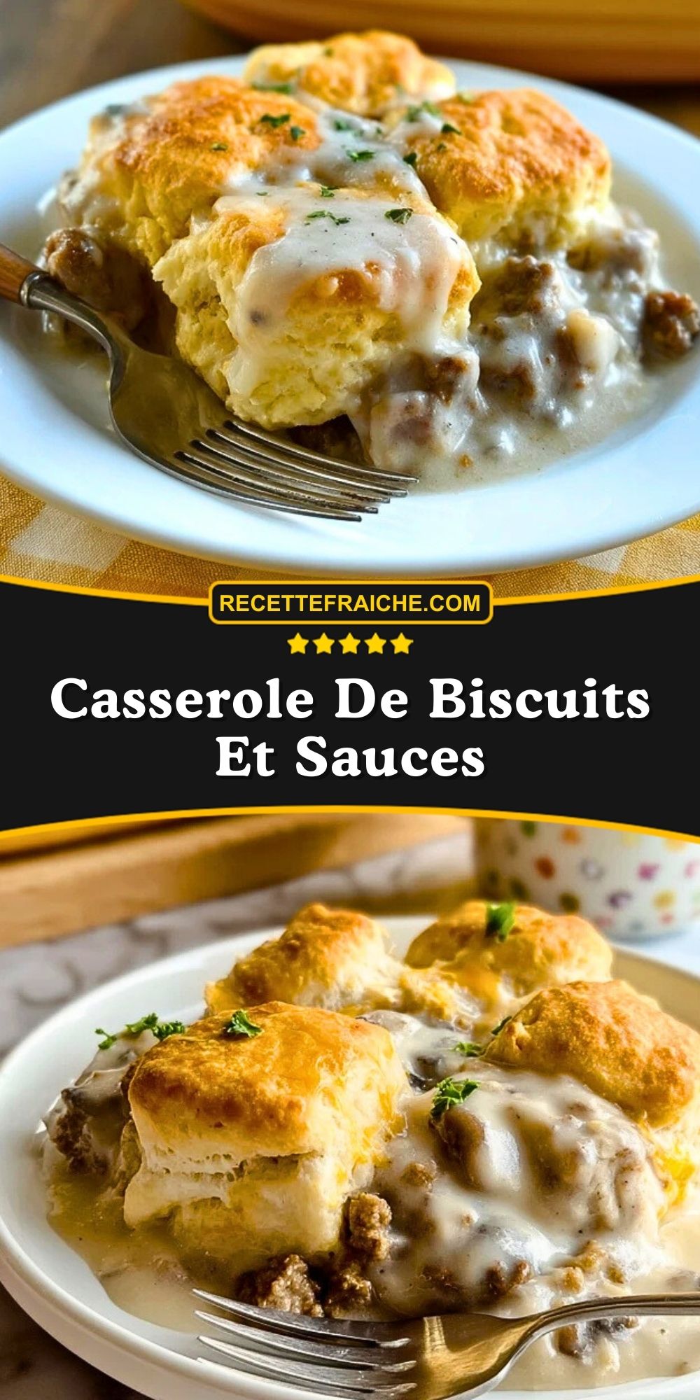 La Casserole De Biscuits Et Sauces est un plat généreux, crémeux et profondément réconfortant. J’aime sa simplicité, son côté familial et le fait qu’elle transforme des ingrédients très classiques en un repas complet et savoureux. C’est une recette à garder sous la main pour les jours où l’on veut cuisiner quelque chose de chaleureux sans complication.