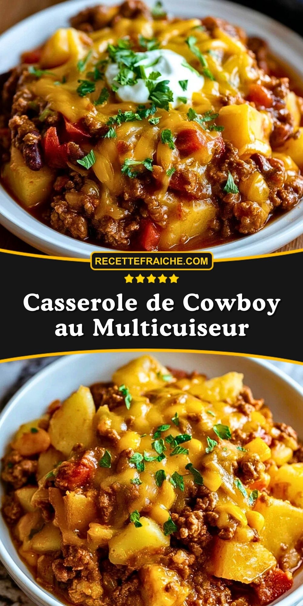 La Casserole de Cowboy au Multicuiseur est un plat complet, réconfortant et facile à préparer. Combinant bœuf haché, pommes de terre, haricots rouges, maïs et fromage fondant, cette recette familiale riche en protéines est idéale pour un dîner rapide aux saveurs tex-mex.