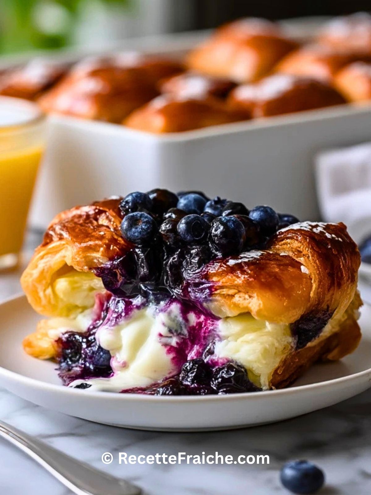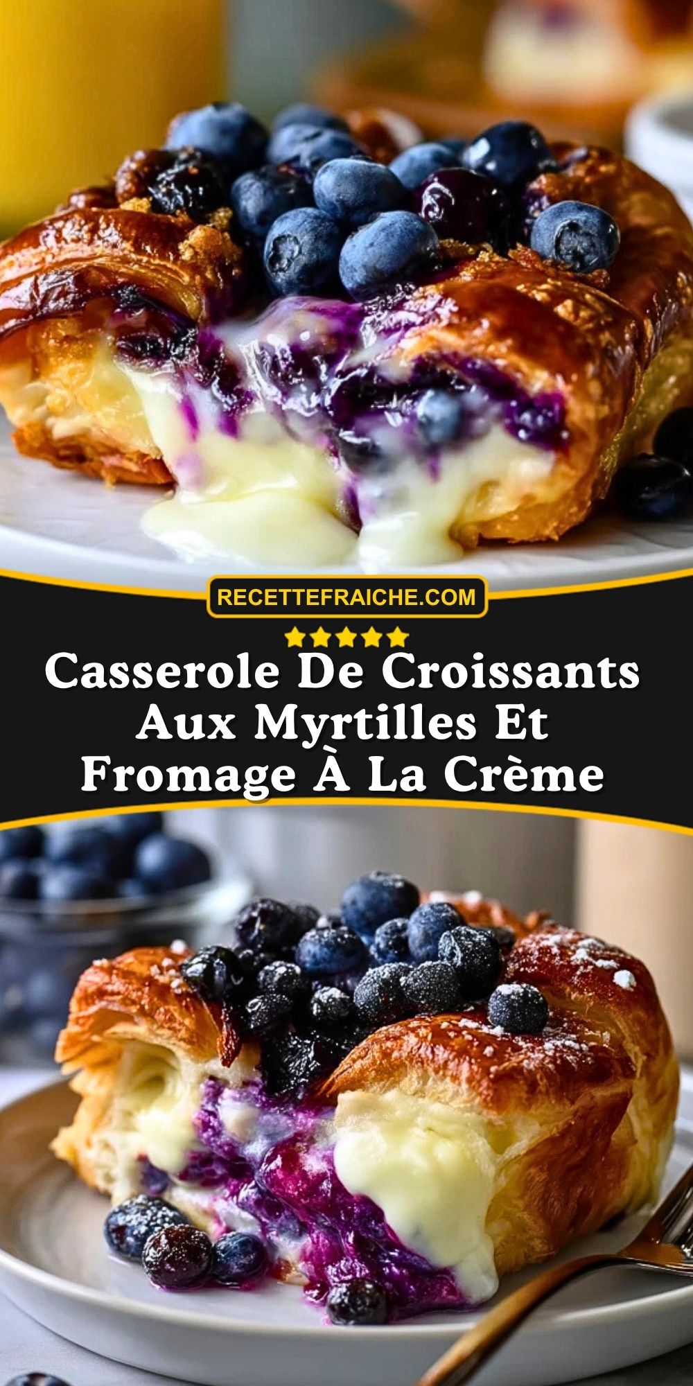 Keywords: casserole de croissants aux myrtilles et fromage à la crème, brunch facile, petit-déjeuner gourmand, dessert aux myrtilles, recette croissants