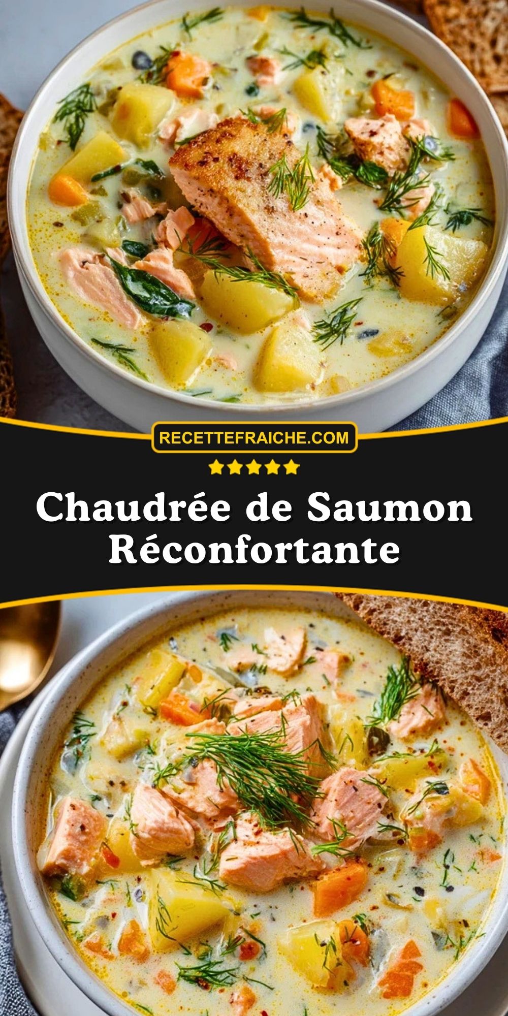 Keywords: chaudrée de saumon, soupe crémeuse au saumon, recette réconfortante, soupe au saumon, chaudrée facile