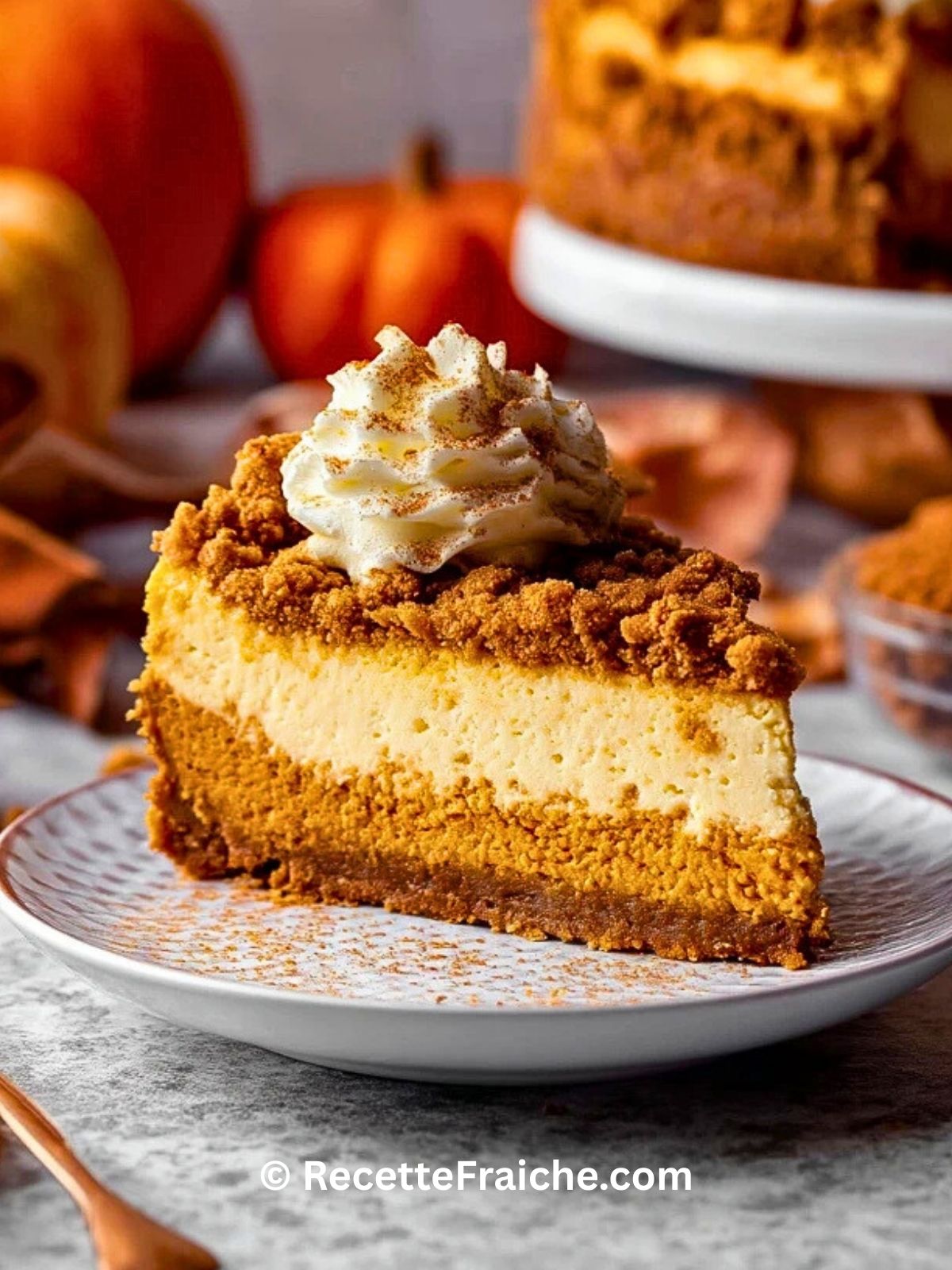 Cheesecake au potiron onctueux avec une base de spéculoos et un crumble croustillant. Un dessert automnal, facile à préparer à l’avance, parfait pour les fêtes ou un goûter réconfortant.