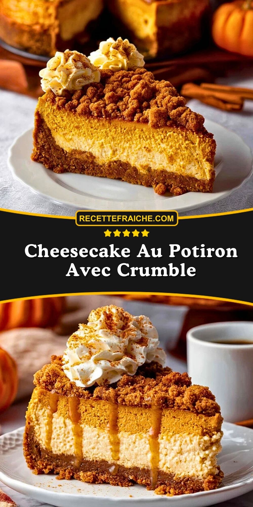 Pense à sauvegarder cette recette sur ton tableau Pinterest et à la partager avec ta famille et tes amis. Ce cheesecake au potiron avec crumble est le dessert d’automne par excellence !