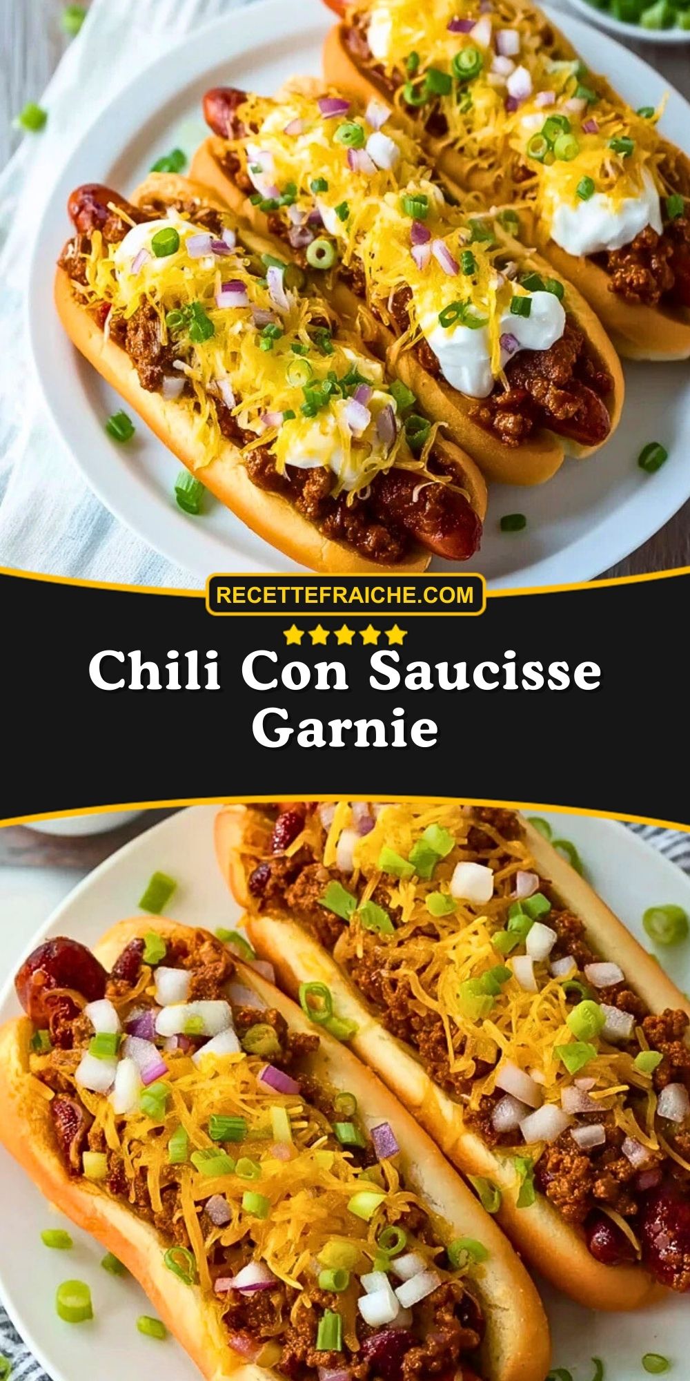 Keywords: chili con saucisse garnie, hot-dog au chili, saucisse fumée, recette facile, repas convivial