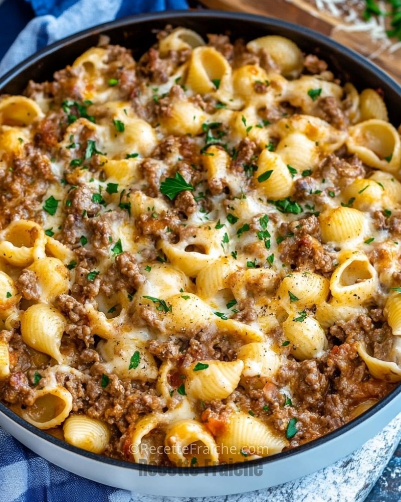 Quand j’ai besoin d’un plat rapide, savoureux et qui plaît à toute la famille, les coquillettes à la crème et au bœuf sont toujours une excellente option. Avec leur sauce crémeuse, leur viande tendre et leur fromage fondant, elles offrent une combinaison parfaite de saveurs et de textures. Ce plat rappelle les repas maison réconfortants, ceux qui réchauffent le cœur après une longue journée.