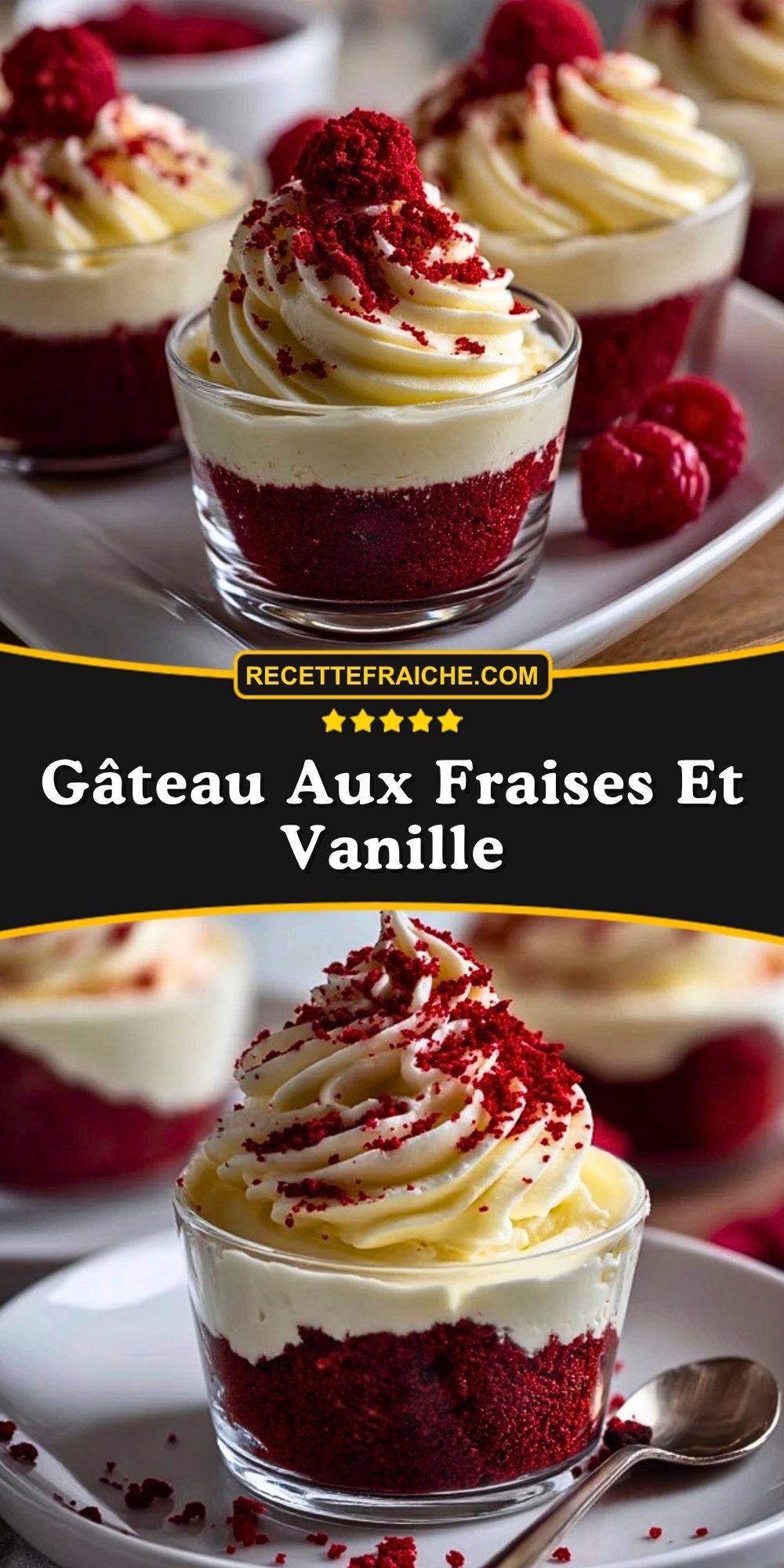 Keywords: coupes de velours rouge avec mousse vanille, dessert en verrine, red velvet, mousse vanille, dessert romantique, dessert de fête