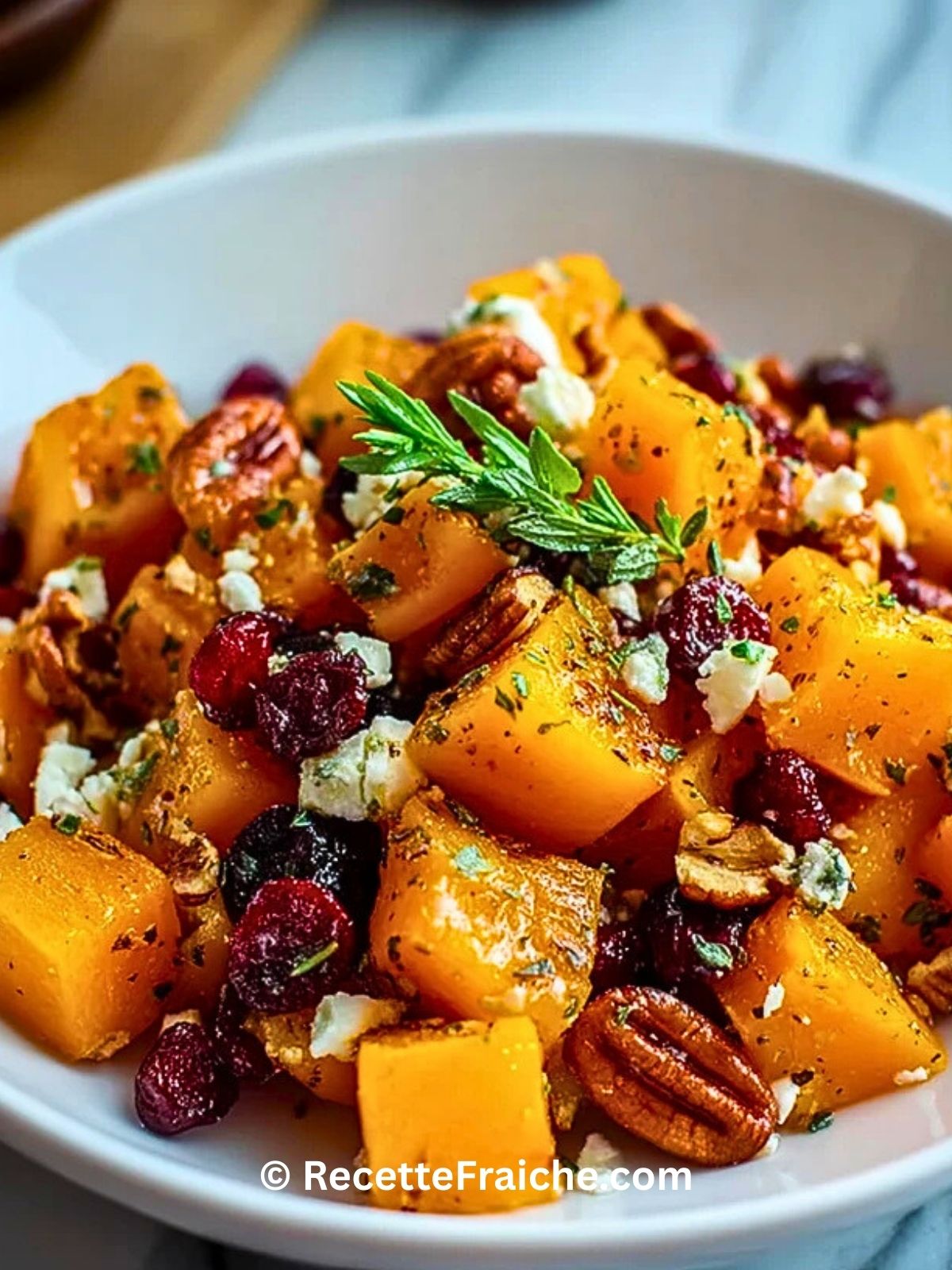 Pourquoi vous allez adorer cette Courge Butternut Rôtie Au Miel Avec Canneberges, Noix De Pécan Et Feta