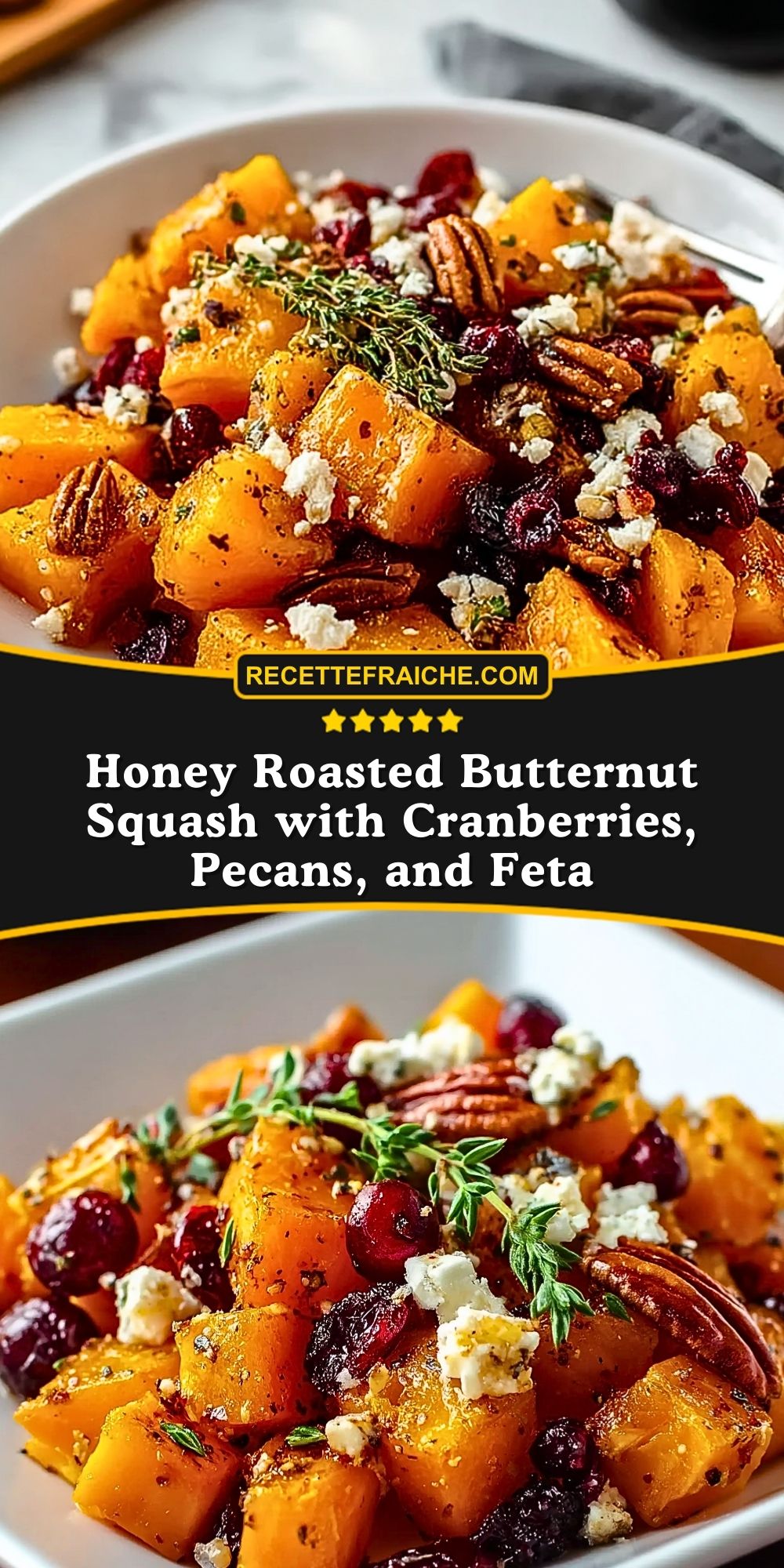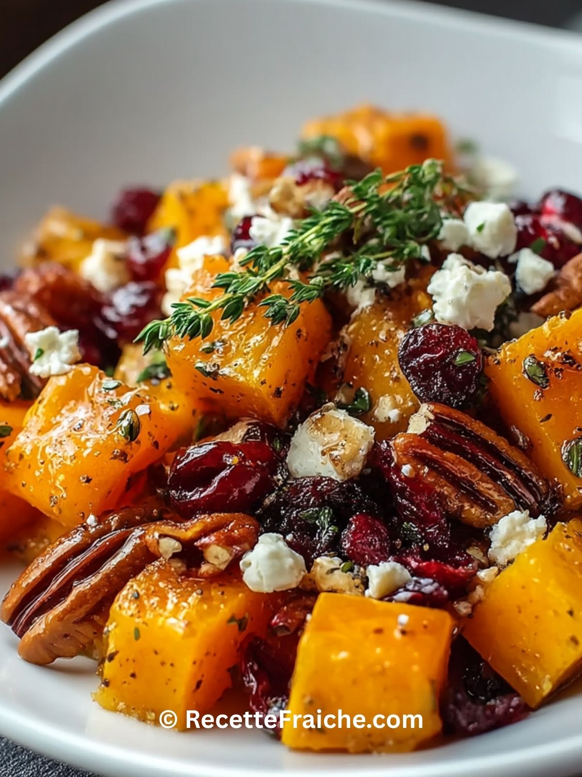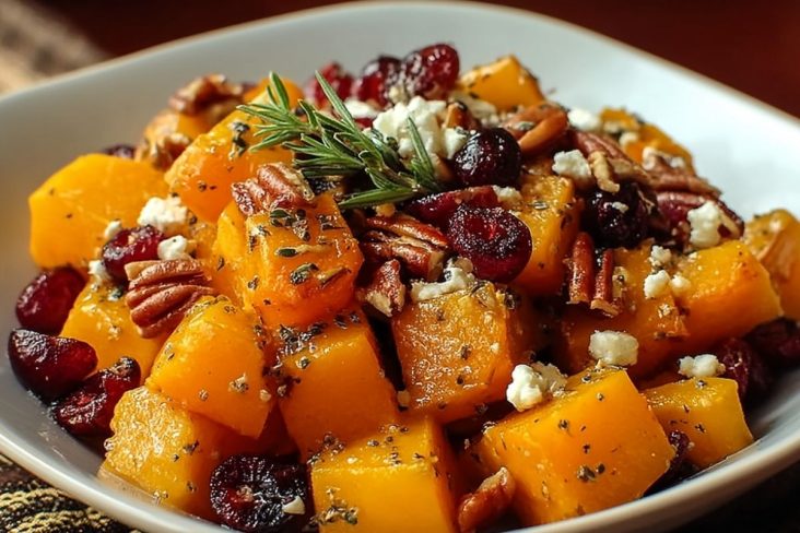 Courge Butternut Rôtie au Miel, Canneberges, Noix de Pécan et Feta
