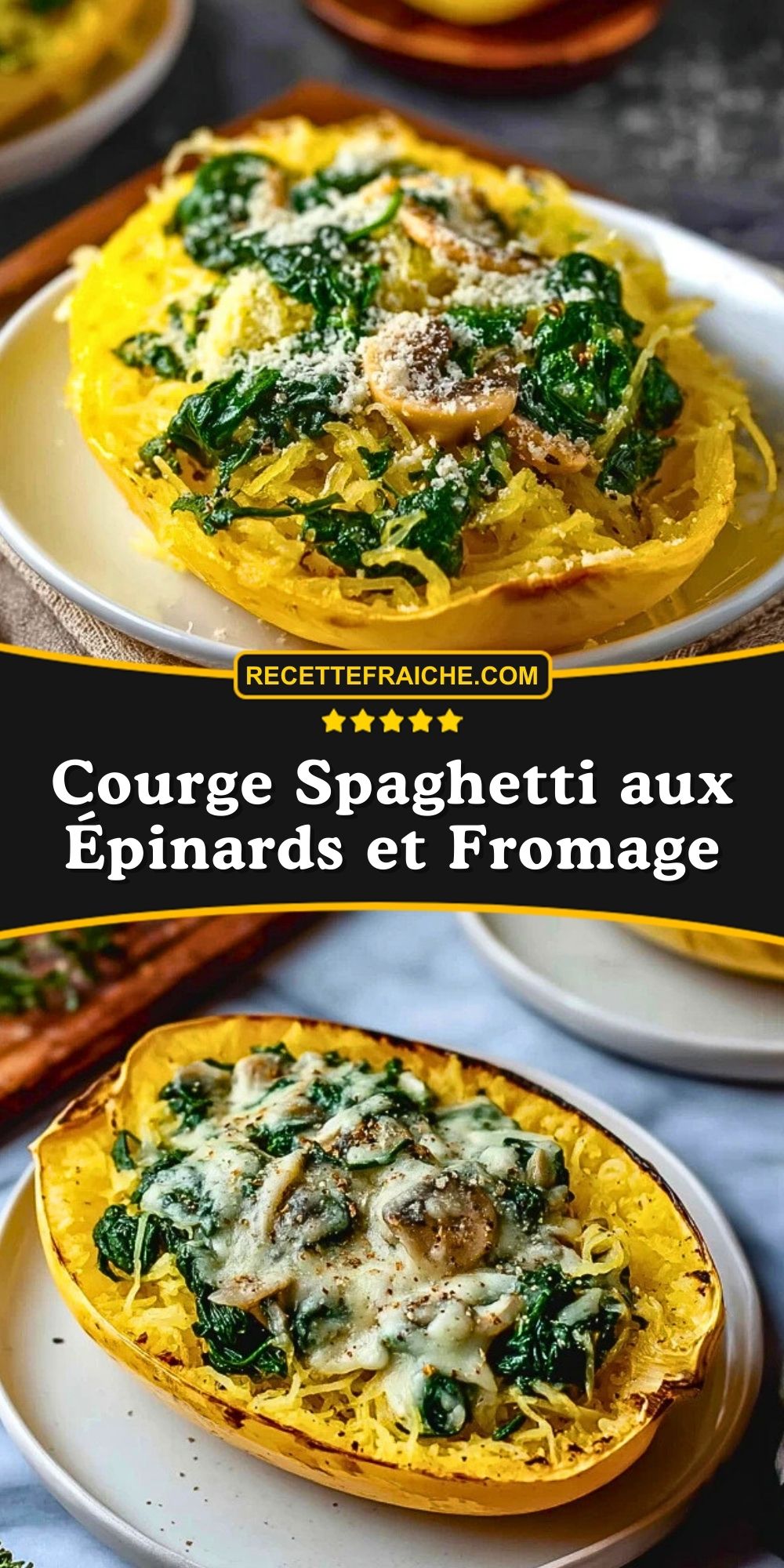 Un plat végétarien original et gourmand : la courge spaghetti devient de vrais spaghettis végétaux, mélangés à des épinards fondants et du fromage gratiné. Facile, réconfortant et naturellement sans gluten, parfait pour un repas sain ou un accompagnement festif. Mots-clés : courge spaghetti, épinards, fromage, plat végétarien, sans gluten, gratin, healthy, facile.