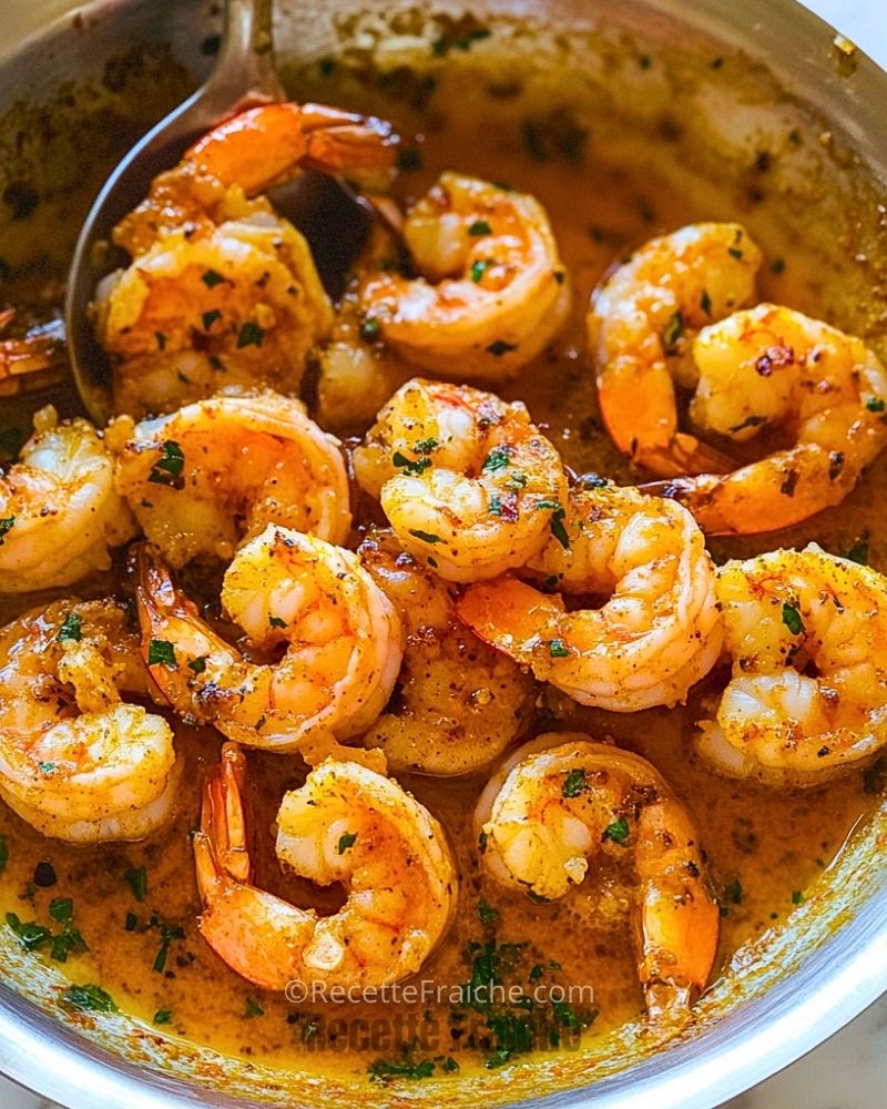 Remettez les crevettes dans la poêle avec la sauce au beurre à l’ail. Mélangez délicatement pour bien les enrober. Laissez cuire encore 1 minute pour que les saveurs se mélangent parfaitement.