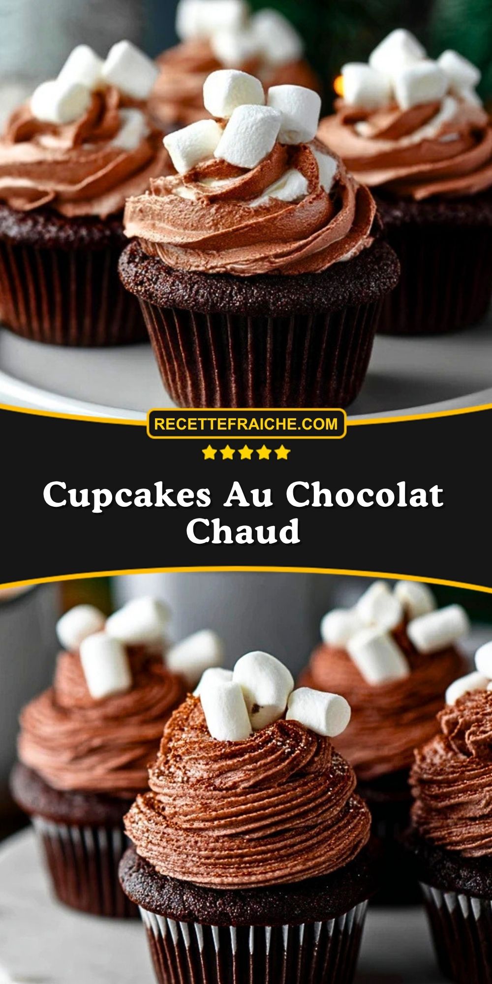 Keywords: cupcakes au chocolat chaud, cupcakes chocolat, dessert au chocolat, cupcakes guimauves, goûter gourmand, dessert hiver