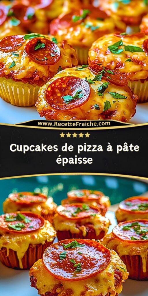 Ces cupcakes de pizza à pâte épaisse sont parfaits pour un apéritif original, un repas convivial ou un encas gourmand. Faciles à personnaliser et à préparer, ils plairont à toute la famille ! Si vous avez aimé cette recette, pensez à l’enregistrer sur Pinterest et à la partager avec vos amis et votre famille.