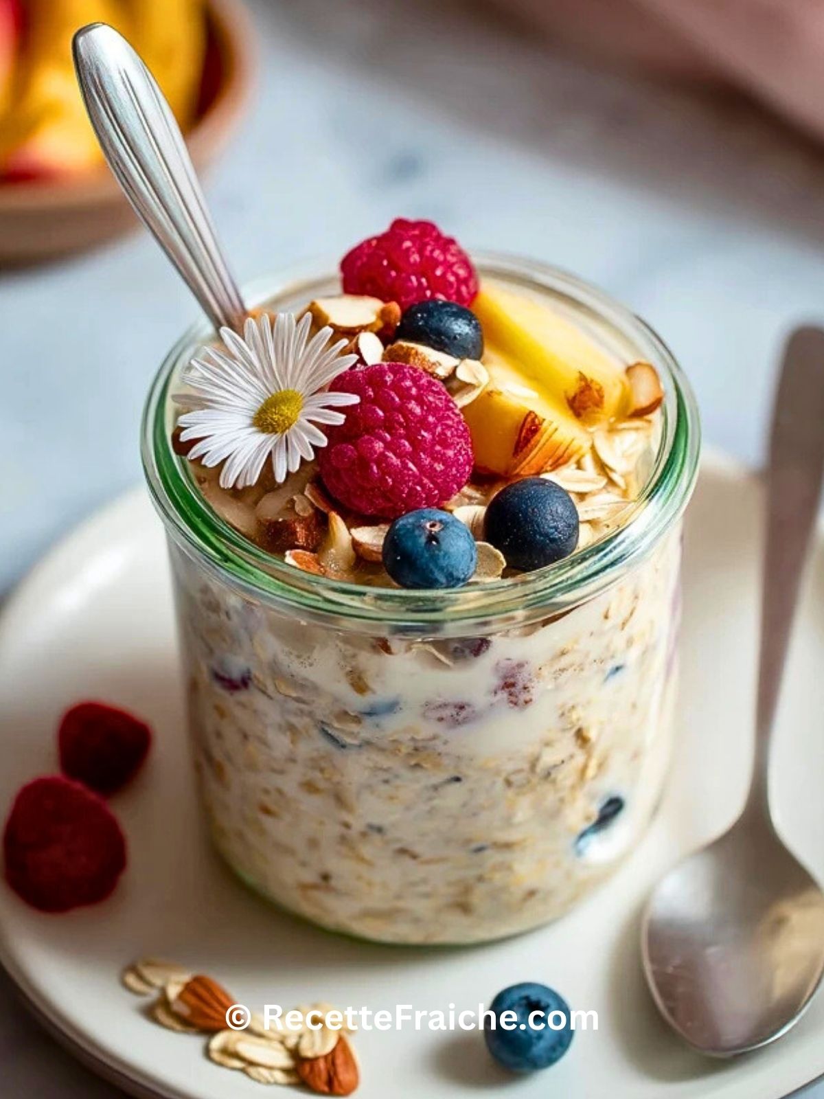 Ajoutez les fruits frais et les amandes seulement au moment de servir pour garder un contraste agréable entre la texture crémeuse des flocons, la fraîcheur des fruits et le croquant des toppings.