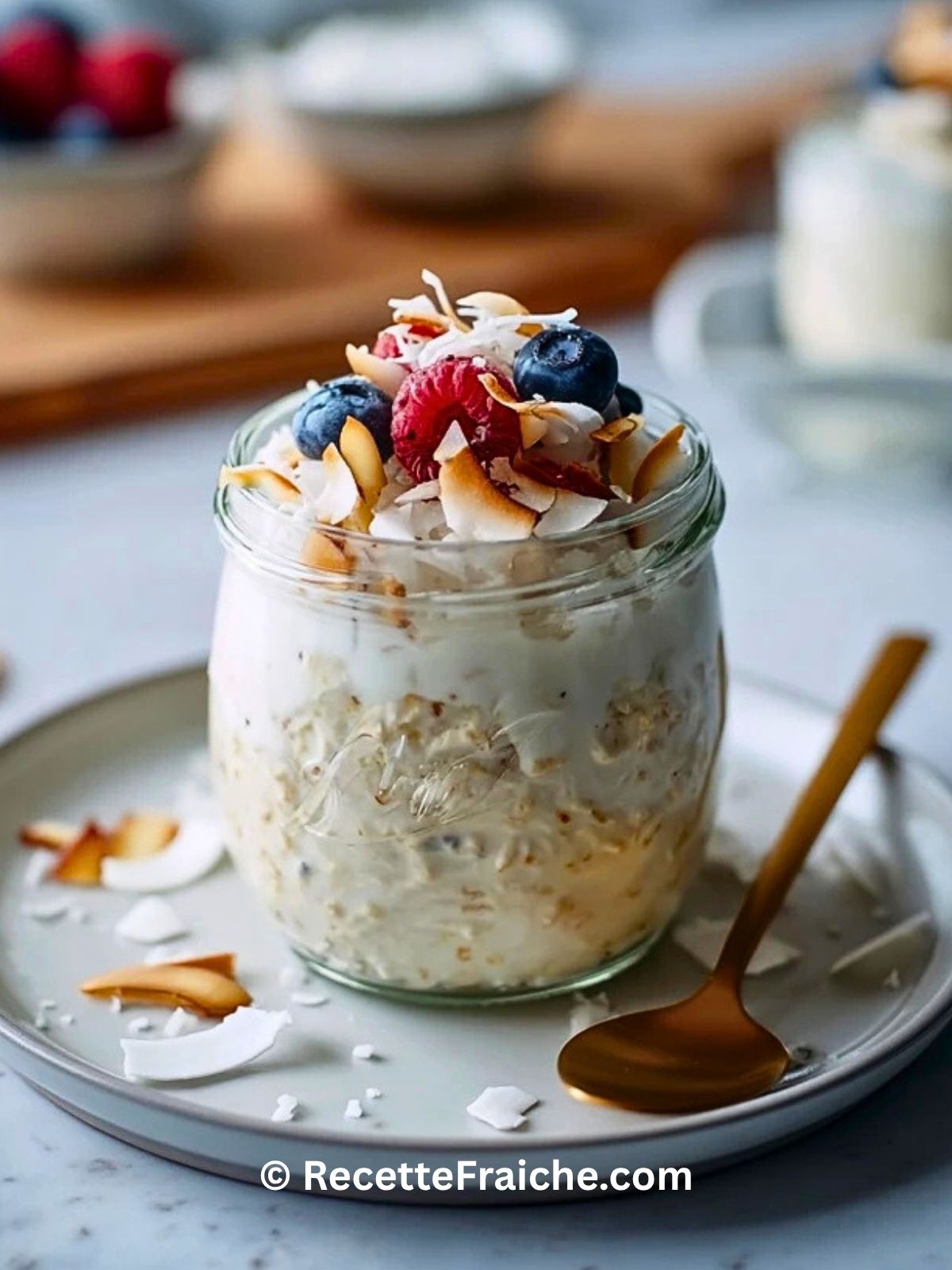 Keywords: flocons davoine nocturnes, overnight oats coco, petit-déjeuner sain, crème de coco, recette facile, avoine overnight