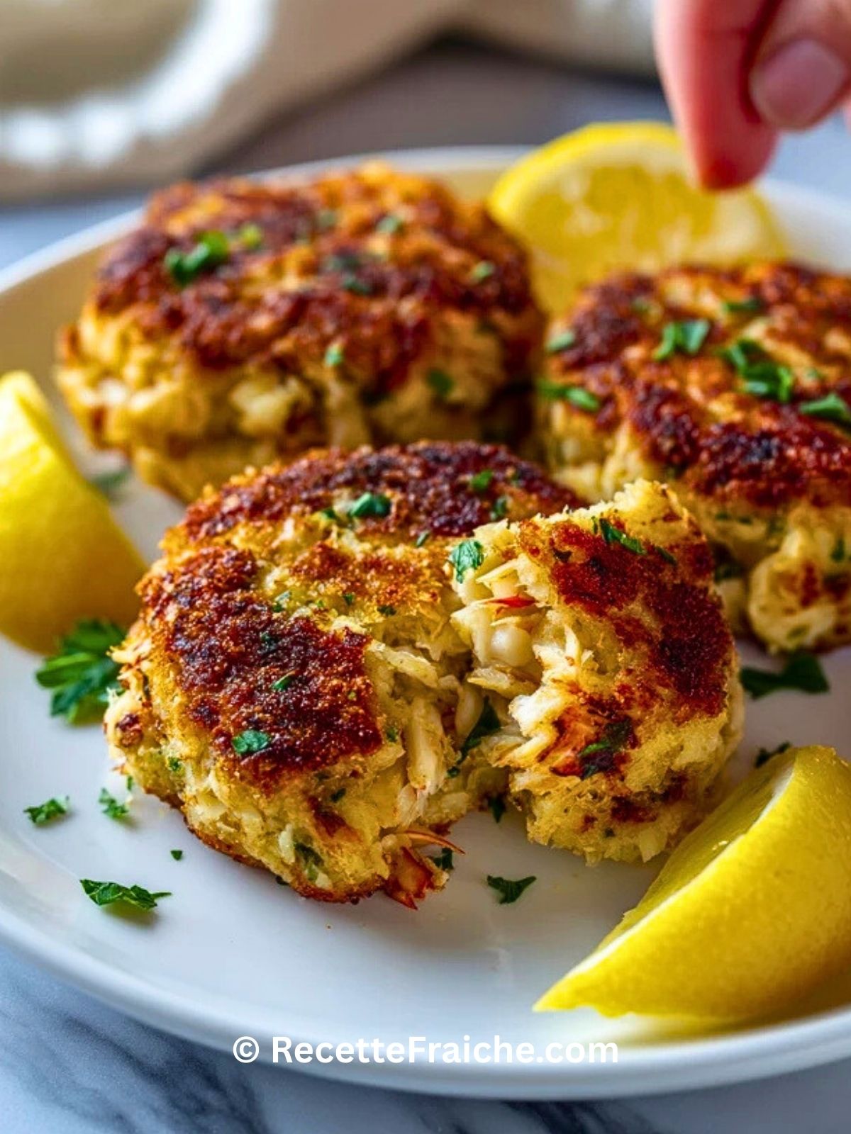 Pour que les galettes se tiennent parfaitement, veille à bien égoutter la chair de crabe et à respecter le temps de repos au réfrigérateur : la chapelure absorbe l’humidité et permet d’obtenir une texture ferme et facile à retourner à la poêle.