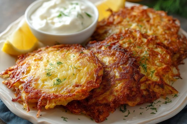 Galettes de pommes de terre allemandes croustillantes à l’extérieur et moelleuses à l’intérieur. Parfaites en accompagnement ou en plat principal, ces Kartoffelpuffer se préparent simplement avec des ingrédients basiques et régalent toute la famille.