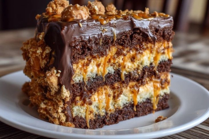 Il y a quelque chose de profondément réconfortant dans l’alliance du beurre de cacahuète et du chocolat. Ce gâteau est ma réponse à toutes les envies de douceur intenses. Je le prépare quand j’ai besoin d’un dessert qui fait fondre tout le monde autour de la table — et je n’ai jamais de restes !