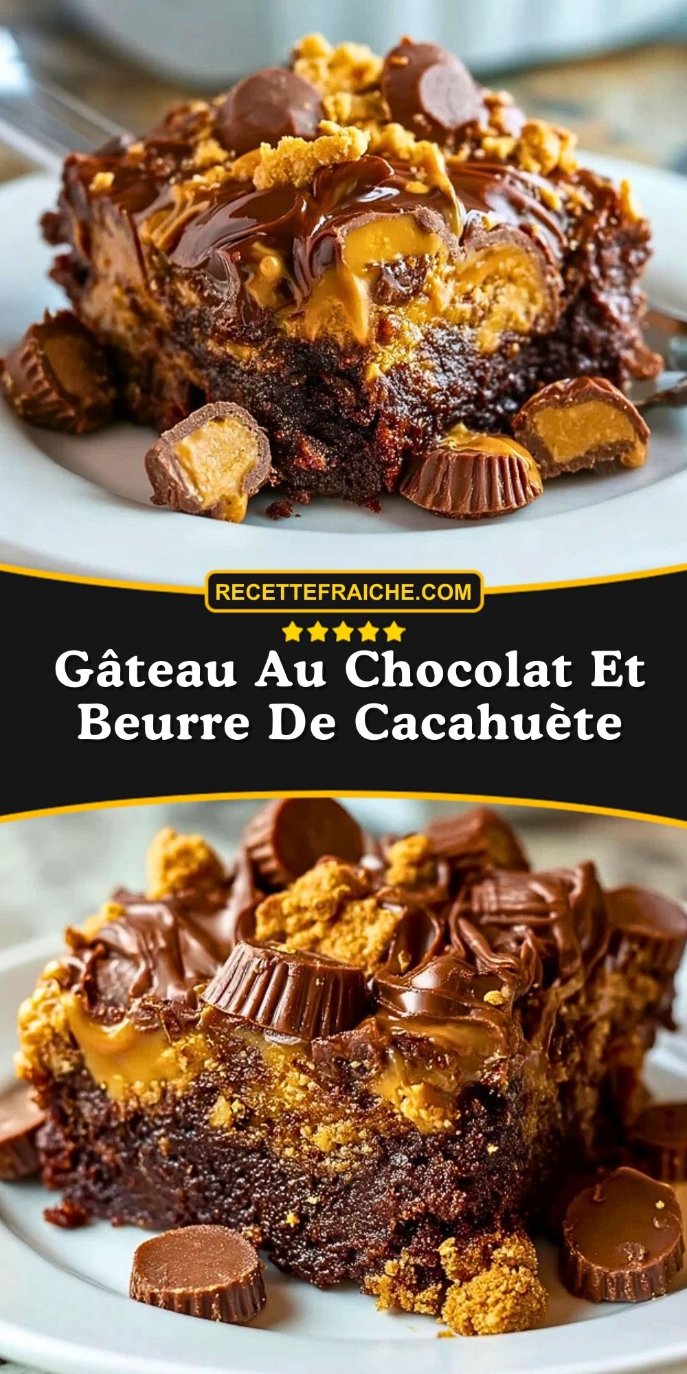 Je dois l’avouer : le mariage du chocolat fondant et du beurre de cacahuète me rend complètement accro. Chaque fois que je prépare ce gâteau, c’est une fête à la maison ! J’adore sa texture ultra moelleuse, son parfum irrésistible et ce mélange de douceur et de gourmandise qui plaît à tous les coups. C’est la recette parfaite quand on veut un dessert généreux, prêt à impressionner… et à se faire plaisir.