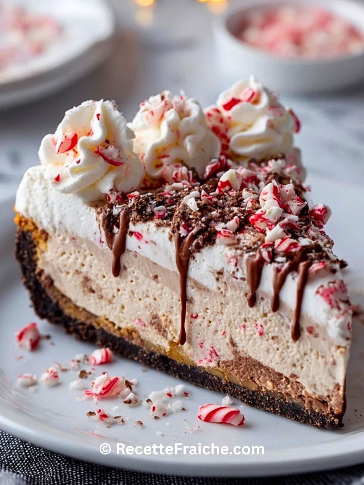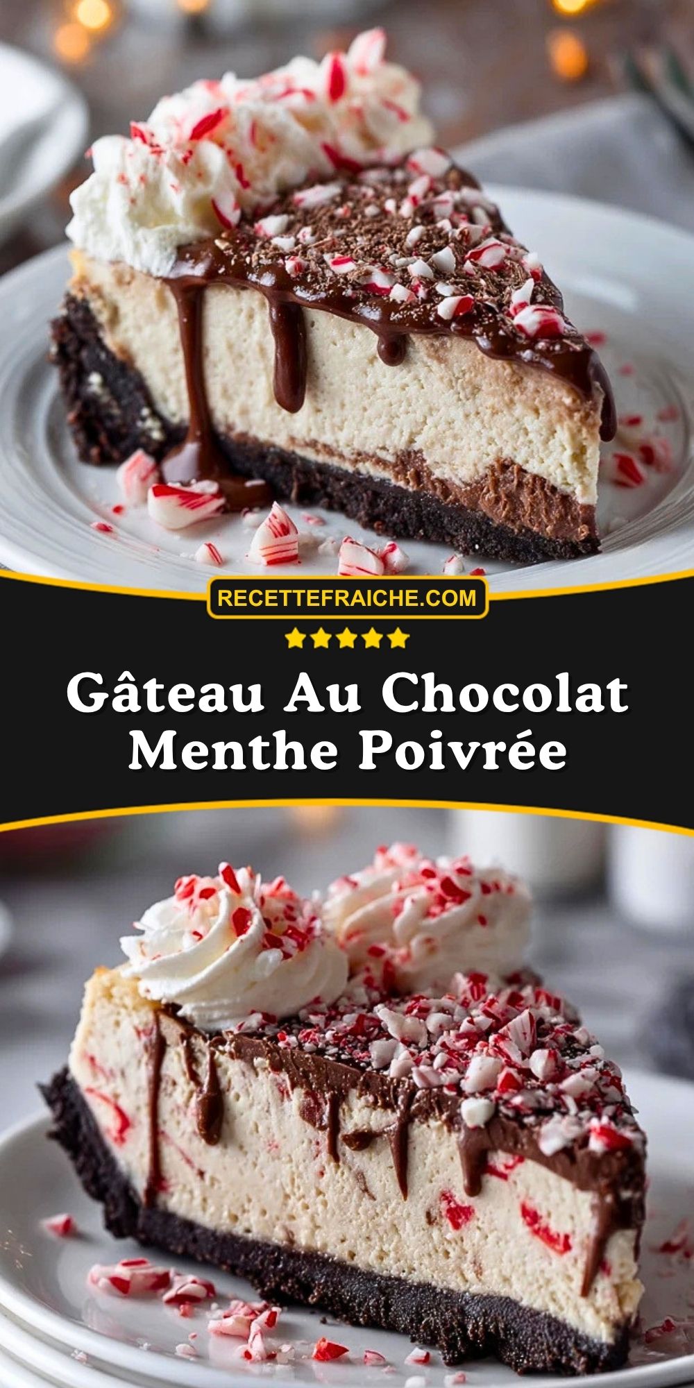 Keywords: gâteau au chocolat menthe poivrée, cheesecake chocolat menthe, dessert de Noël, dessert festif, gâteau chocolat menthe