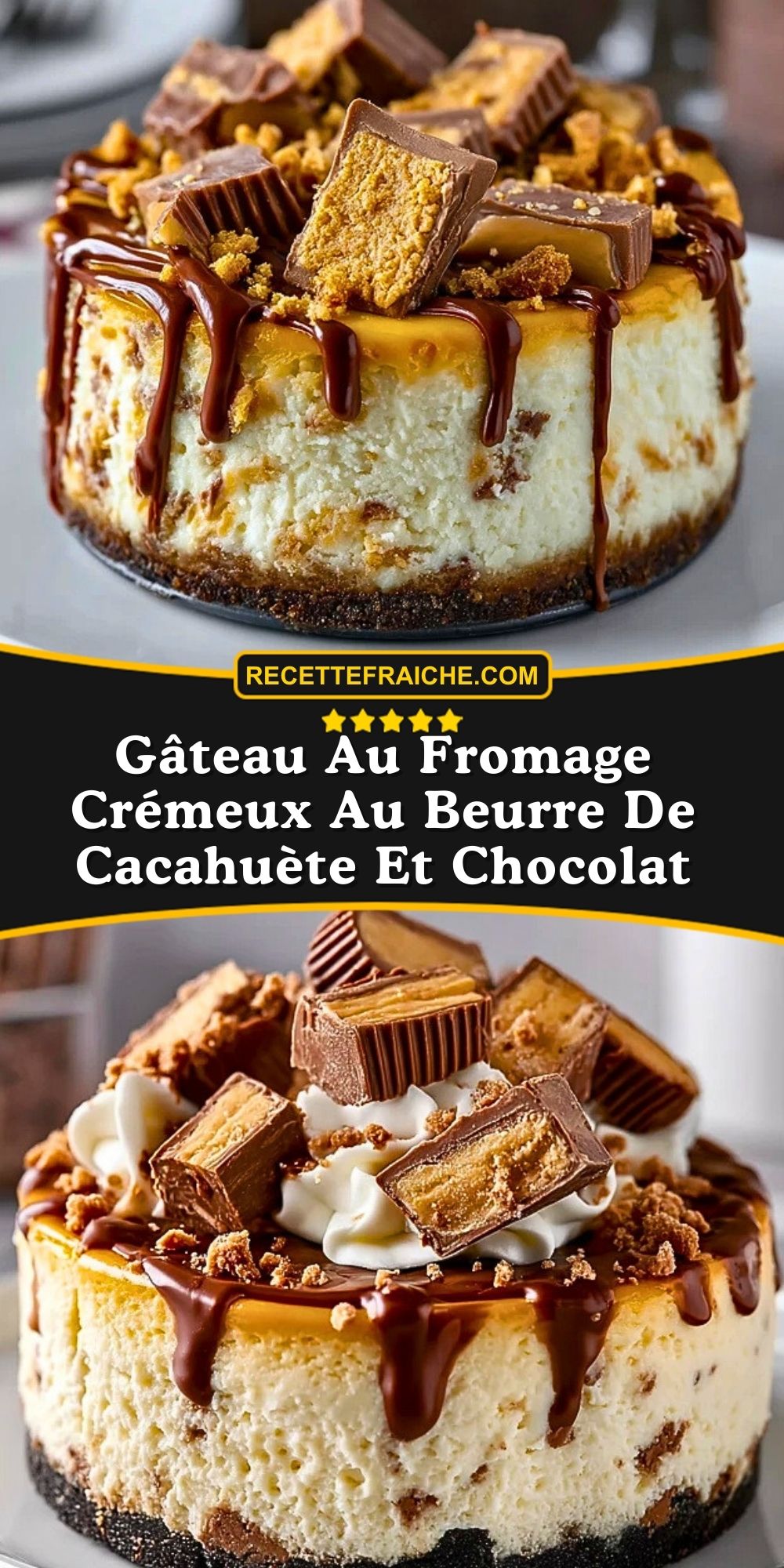 Un gâteau au fromage onctueux mêlant beurre de cacahuète et chocolat pour une explosion de saveurs. Une recette gourmande, idéale pour les amateurs de douceurs réconfortantes et faciles à préparer à l’avance.