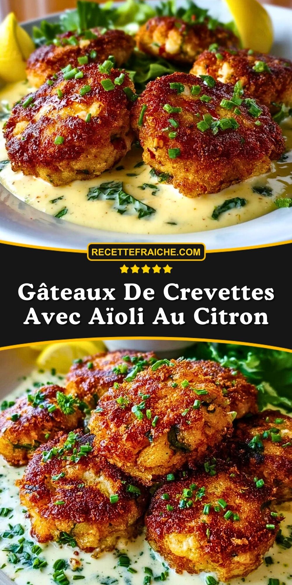 Keywords: gâteaux de crevettes, aïoli citron, entrée facile, fruits de mer