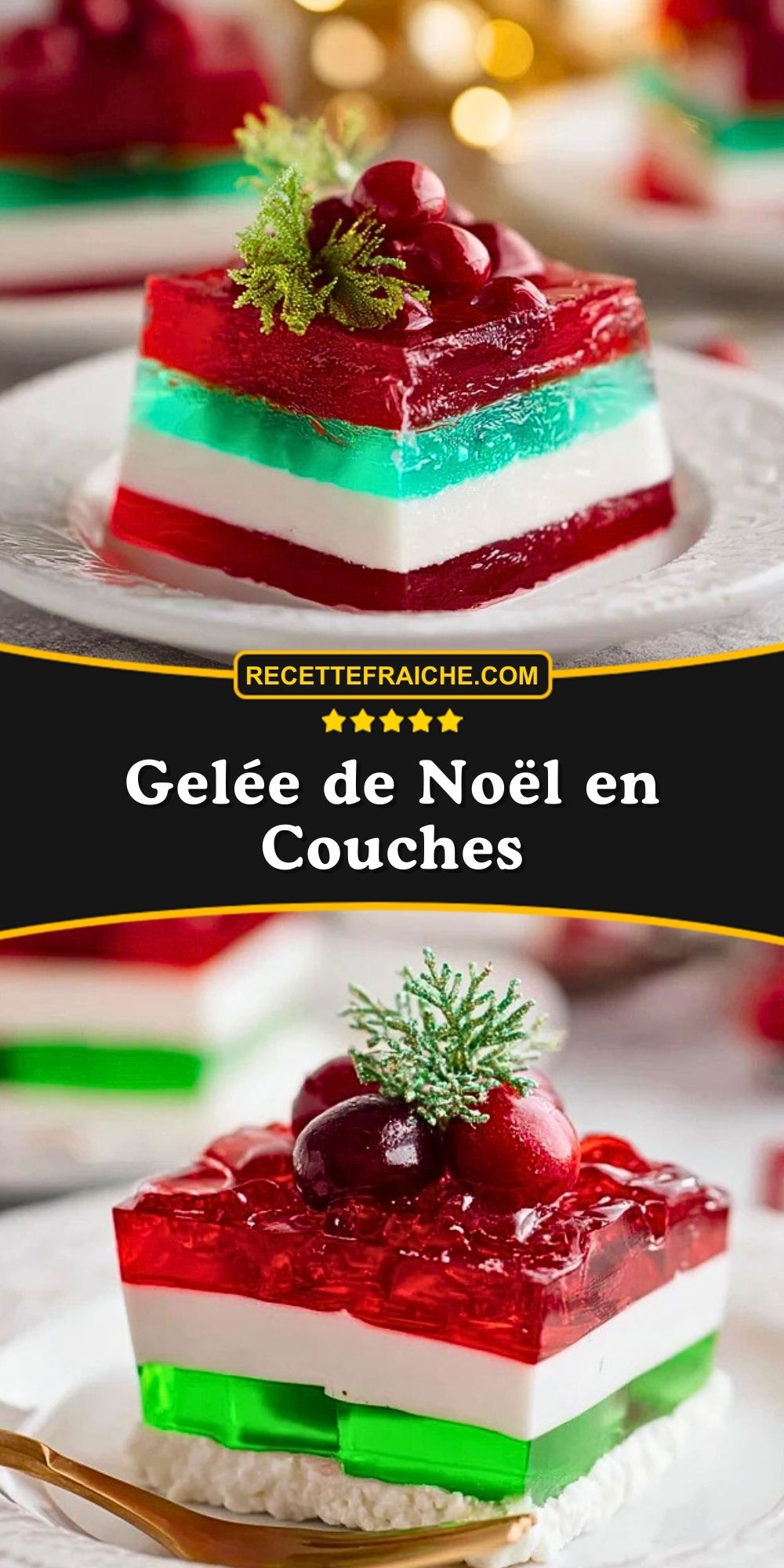 Un dessert festif coloré et ludique composé de couches de gelée fruitée et de lait concentré sucré, parfait pour égayer les tables de Noël. Facile à préparer et visuellement bluffant !