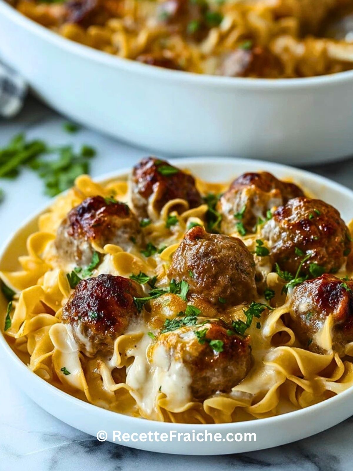 - Parce qu’il rassemble pâtes, boulettes et sauce crémeuse dans un seul plat complet, ultra gourmand.