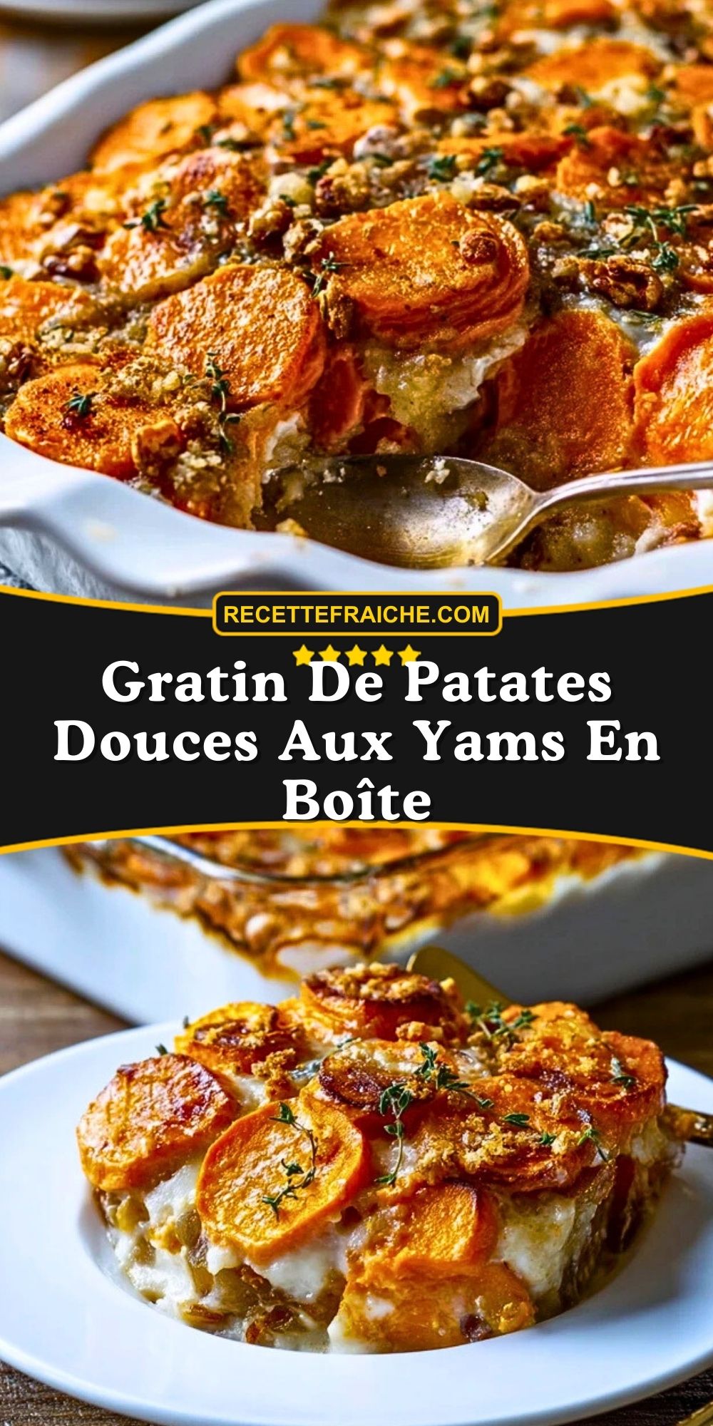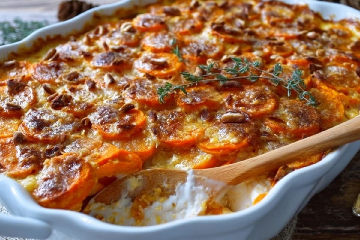Gratin de patates douces aux yams en boîte, onctueux et légèrement sucré, parfait pour les repas de fête ou les dîners réconfortants. Facile à préparer, ce gratin gourmand associe douceur, épices et croquant pour un plat familial réussi.